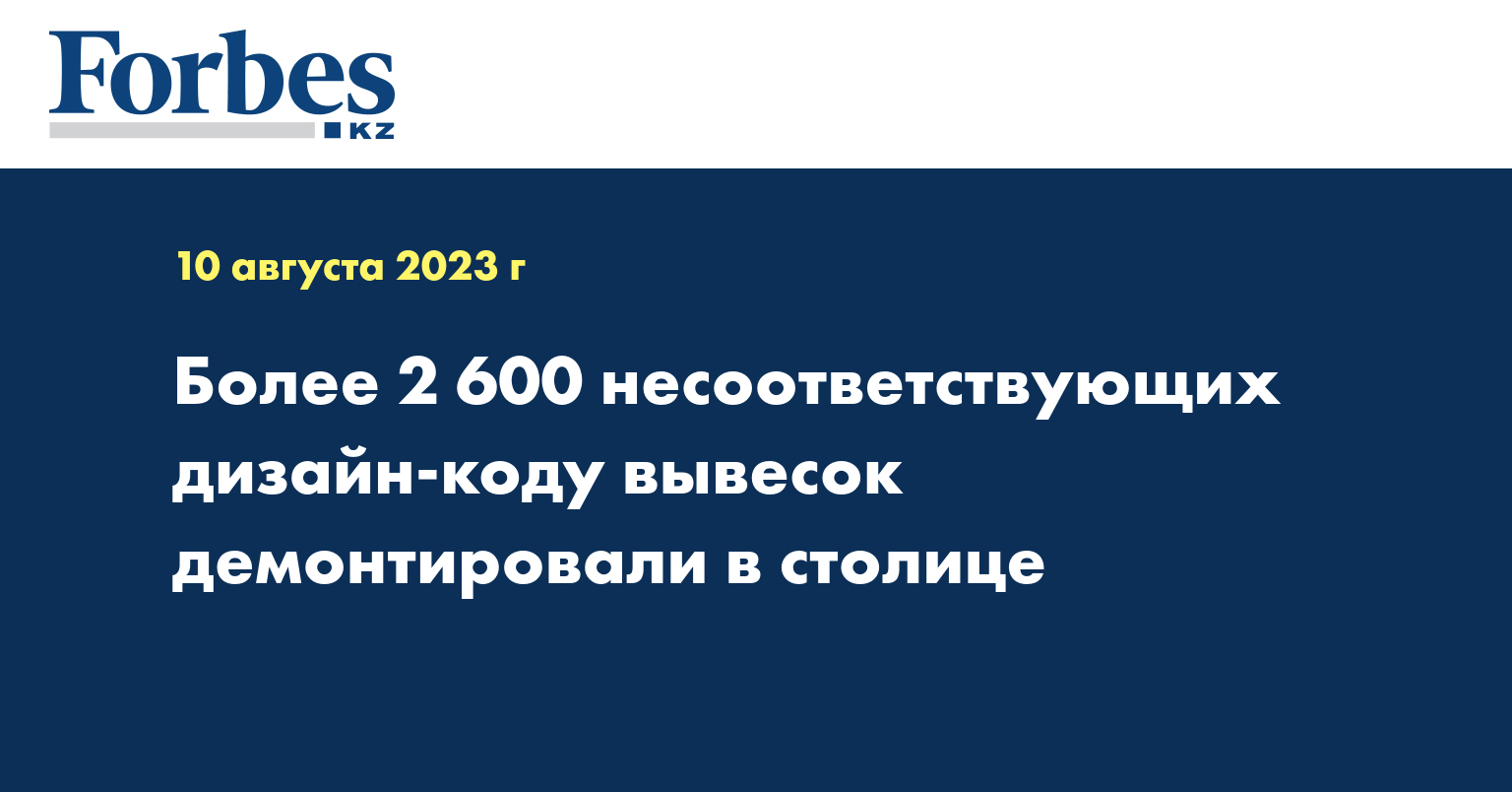 С начала года в пяти районах Астаны демонтировали более 2 600 рекламных вывесок и баннеров, которые не соответствовали дизайн-коду города. Районные акиматы организуют мероприятия по разъяснению и демонтажу незаконной и несоответствующей рекламы, в том числе баннеров, вывесок и рекламы на колесах. С предпринимателями проводят беседы, выдают уведомления о приведении вывесок в соответствие с дизайн-кодом.