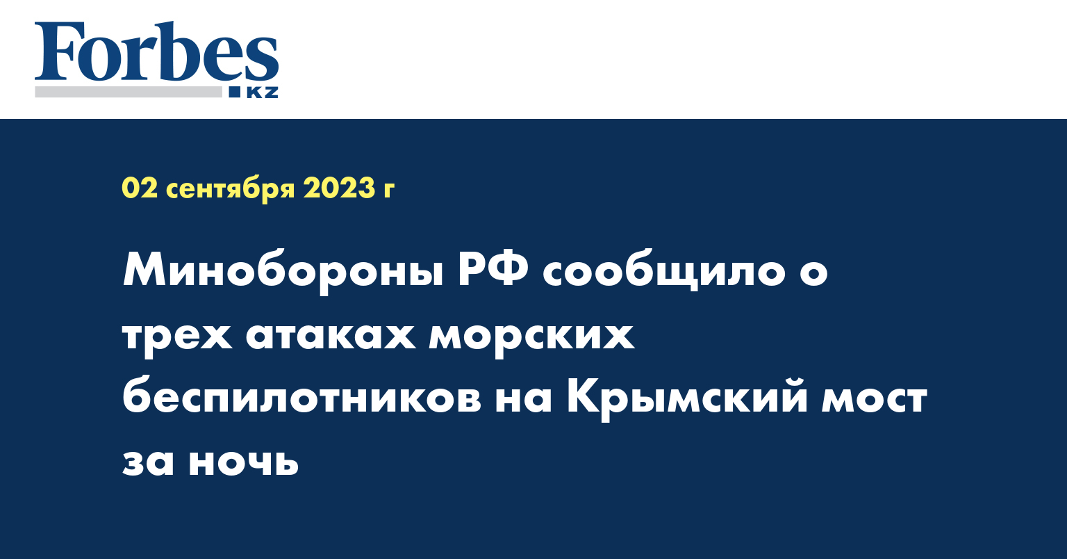 В ночь на субботу, 2 сентября, ВСУ трижды пытались атаковать Крымский мост безэкипажными катерами, сообщило российское Минобороны, передает Forbes.ru.