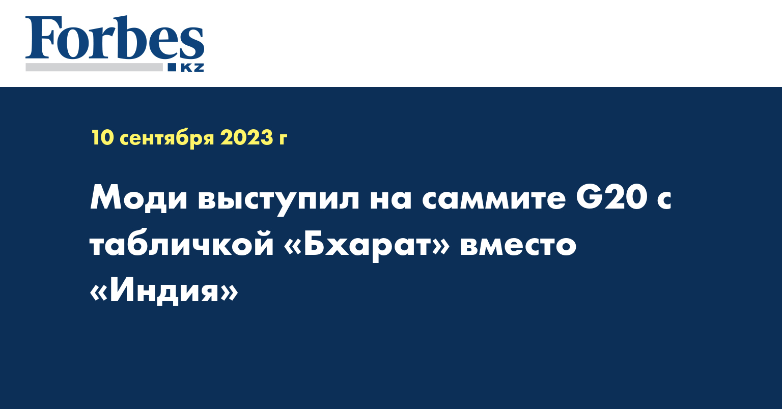 Премьер-министр Индии Нарендра Моди выступил на саммите G20 с табличкой с надписью «Бхарат», вызвав обсуждения возможного переименования страны. Раньше на таких табличках всегда было написано «Индия», передает Forbes.ru со ссылкой на Reuters.