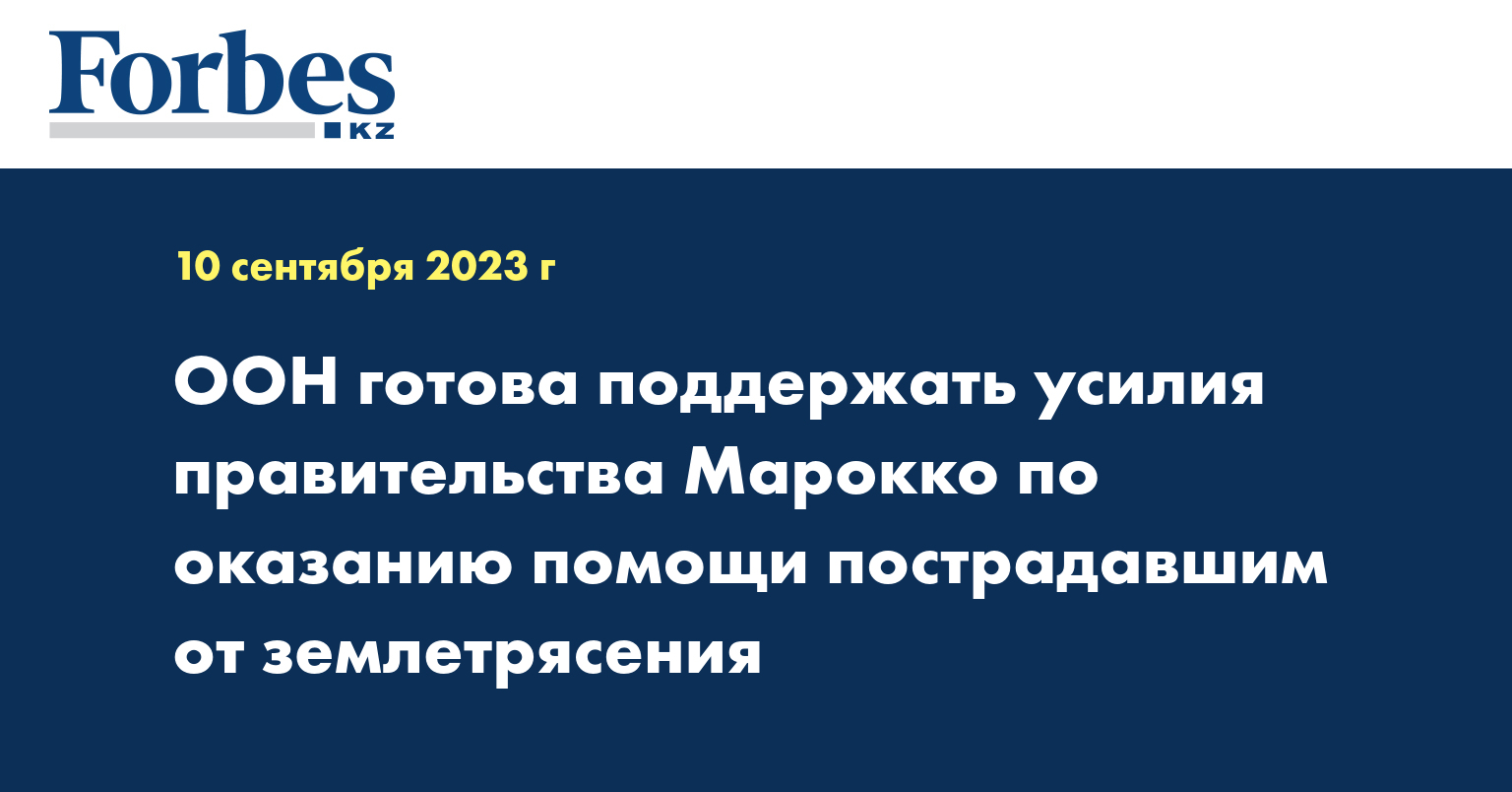 ООН готова поддержать усилия правительства Марокко по оказанию помощи пострадавшим. Натали Фустьер, Постоянный координатор ООН в Морокко, в эксклюзивном интервью Службе новостей ООН заявила, что ее офис обратился к правительству Марокко с предложением оказать поддержку в поиске и спасении, координации гуманитарной помощи и в сфере здравоохранения. «Пока мы находимся в режиме ожидания», – добавила она.