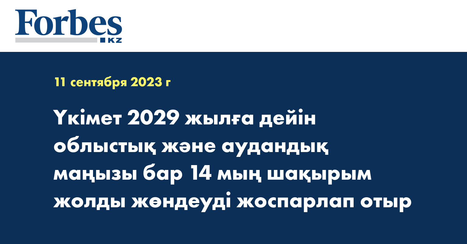 Жалпы 2029 жылға дейін облыстық және аудандық маңызы бар 14 мың шақырым жолды жөндеу жоспарланған.