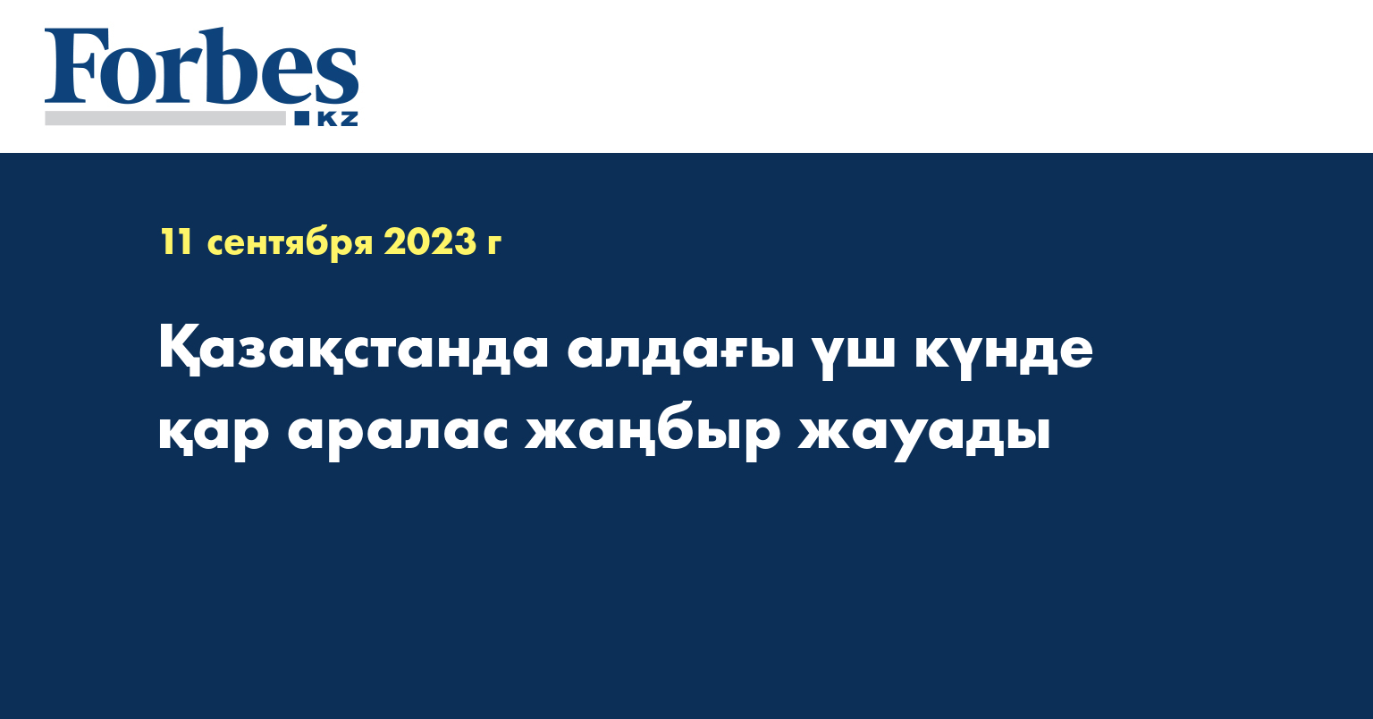 Синоптиктердің болжамынша, алдағы үш күнде Қазақстанда күшті жел соғып, күн күркіреп, жаңбыр жауады. 12 қыркүйекте республиканың солтүстік-батыс, солтүстік, орталық және шығысында нөсер жаңбыр жауады. Оңтүстік-шығыстағы таулы аудандарда түнде қар аралас жаңбыр жаууы мүмкін.