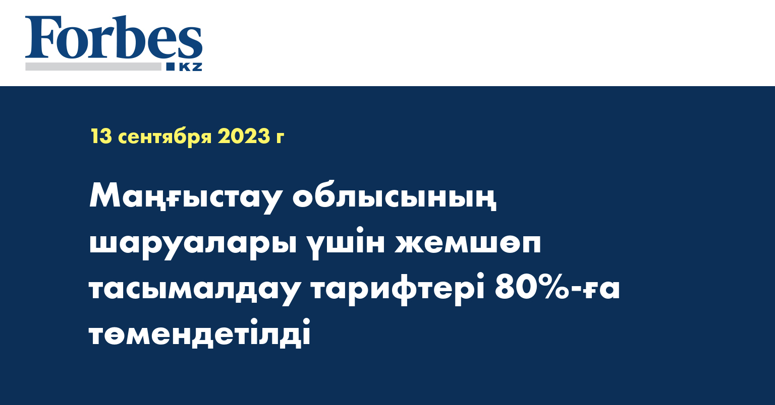 Маңғыстау облысының фермерлері үшін темір жол көлігімен жем тасымалдау тарифтері 80%-ға төмендетілді. Ұлттық тасымалдаушы «Қазақстан Темір Жолы» компаниясы арзандатылған тарифтерді 2023 жылғы 1 қыркүйектен 2024 жылғы 1 қаңтарға дейінгі кезеңге енгізді.