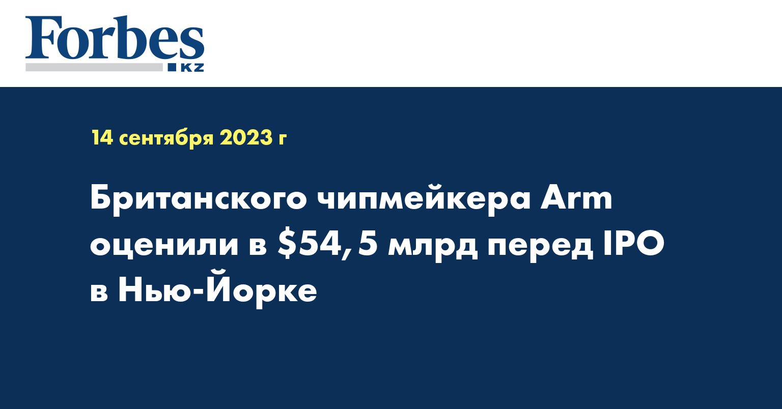 Британский чипмейкер Arm, принадлежащий японскому холдингу SoftBank Group, предложит свои акции на IPO в Нью-Йорке по $51 за штуку. Объем предложения составляет 95,5 млн американских депозитарных акций (ADS). Заявление об этом опубликовано на сайте компании, передает Forbes.ru.