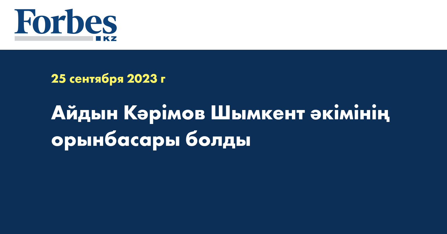 Шымкент қаласы әкімінің орынбасары қызметіне Айдын Кәрімов тағайындалды, деп хабарлайды ҚазАқпарат тілшісі.