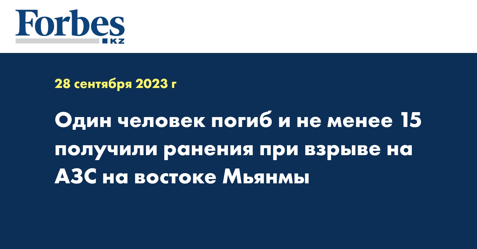 Один человек погиб и по меньшей мере 15 получили ранения в среду в результате взрыва на АЗС в Шанской области на востоке Мьянмы, сообщил официальный представитель, передает Синьхуа.