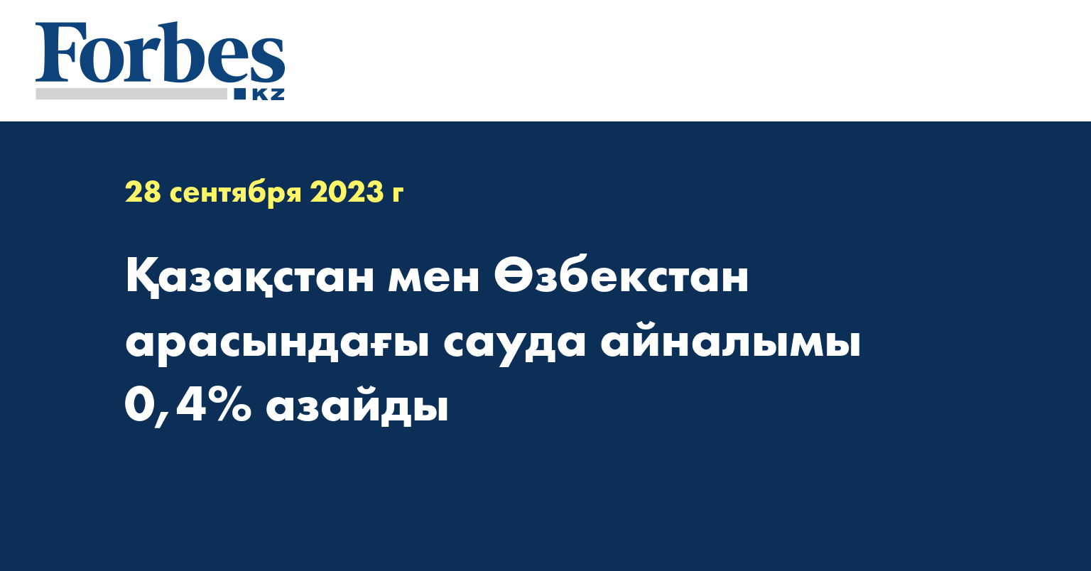 Биыл қаңтар–шілде қорытындысы бойынша, Қазақстан мен Өзбекстан арасындағы тауар айналымы 2,5 млрд АҚШ долларын құрады, бұл бір жыл бұрынғыдан 0,4% аз, finprom.kz деп хабарлайды.