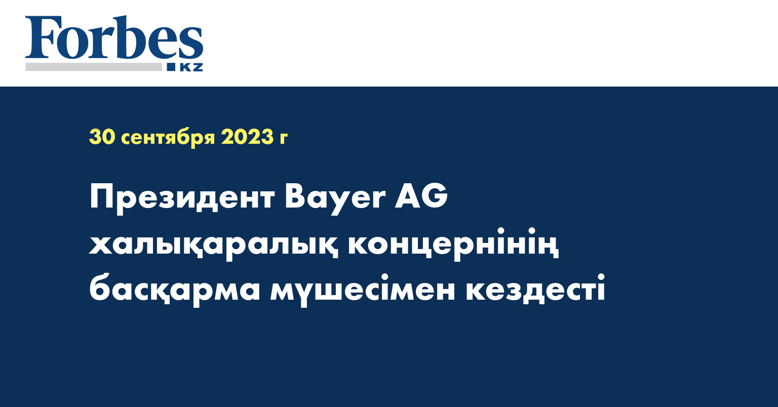 Bayer AG компаниясының басқарма мүшесі, фармацевтика бағытының басшысы Штефан Ольрихпен кездесу барысында денсаулық сақтау, орнықты егіншілік және ғылыми зерттеулер салаларындағы ынтымақтастық перспективалары талқыланды, деп хабарлайы Ақорда.