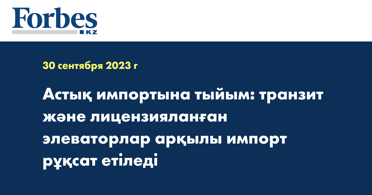 - 2023 жылғы 11 қазаннан бастап үшінші елдерден және ЕАЭО елдерінен автомобиль көлігімен Қазақстан аумағына бидай әкелуге (СЭҚ ТН: 100119; 100199) 6 ай мерзімге тыйым салу ұзартылды;