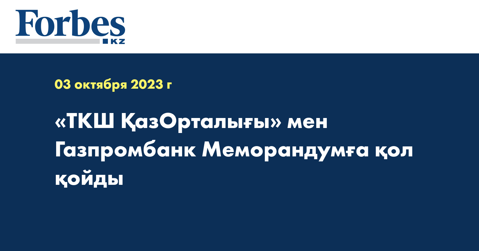 "ТКШ ҚазОрталығы" мен Газпромбанк тұрғын үй-коммуналдық шаруашылықты дамыту саласындағы келісімшарттарды банктік сүйемелдеу саласындағы ынтымақтастық туралы Меморандумға қол қойды