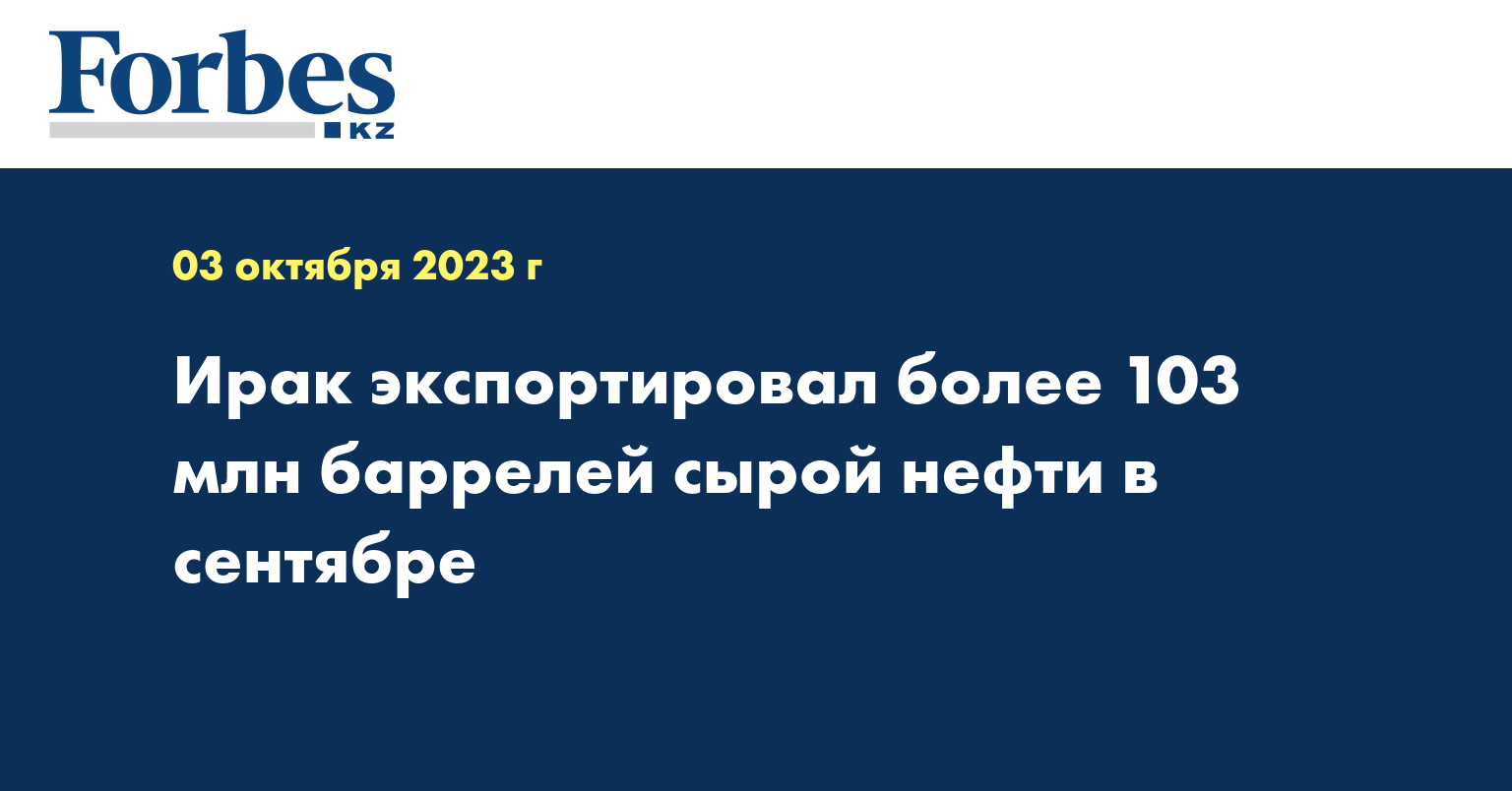 Ирак экспортировал 103,14 млн баррелей сырой нефти в сентябре, получив доход в размере 9,49 млрд долларов США, сообщило в воскресенье Министерство нефти страны, передает Синьхуа.