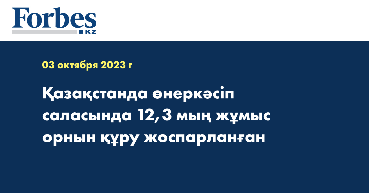 Ағымдағы жылы елімізде жалпы құны 1 трлн теңге болатын 170 өнеркәсіптік жобаны іске асыру жоспарланған. Бұл 12,3 мыңнан астам тұрақты жұмыс орнын құруға мүмкіндік береді. 1 қазандағы жағдай бойынша 3,7 мың тұрақты жұмыс орны құрыла отырып, 233,4 млрд теңгеге 64 жоба жүзеге асырылды. Бұл туралы Үкімет отырысында Өнеркәсіп және құрылыс министрі Қанат Шарлапаев мәлімдеді.