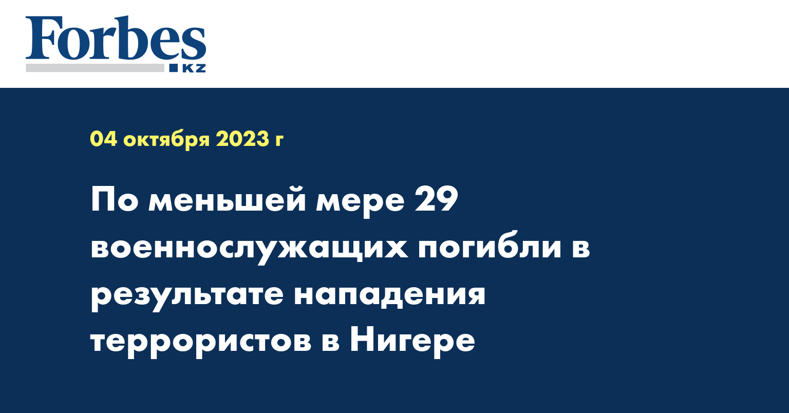 По сообщению из Ниамея, Министерство обороны Нигера, в котором произошел государственный переворот, заявило вечером в понедельник в эфире гостелевидения, что в последние дни на северо-западе страны террористы атаковали одно из подразделений армии, в результате чего погибло не менее 29 военнослужащих, передает Синьхуа.