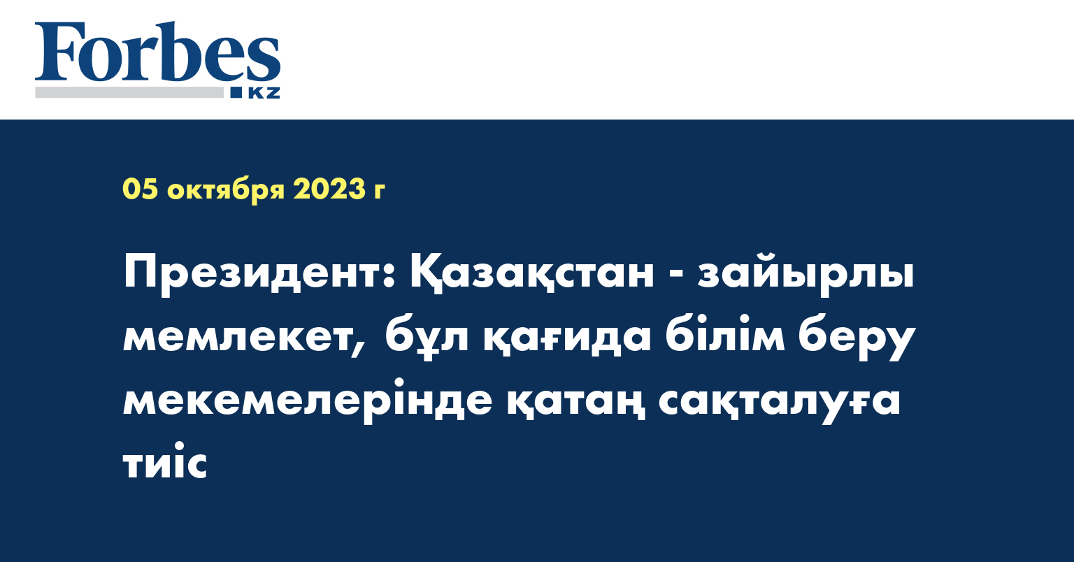 «Мен қоғамда жиі талқыланатын тағы бір мәселеге тоқталғым келеді. Қазақстан – Конституция бойынша зайырлы мемлекет. Бұл қағида барлық жерде, соның ішінде білім беру мекемелерінде қатаң сақталуға тиіс.