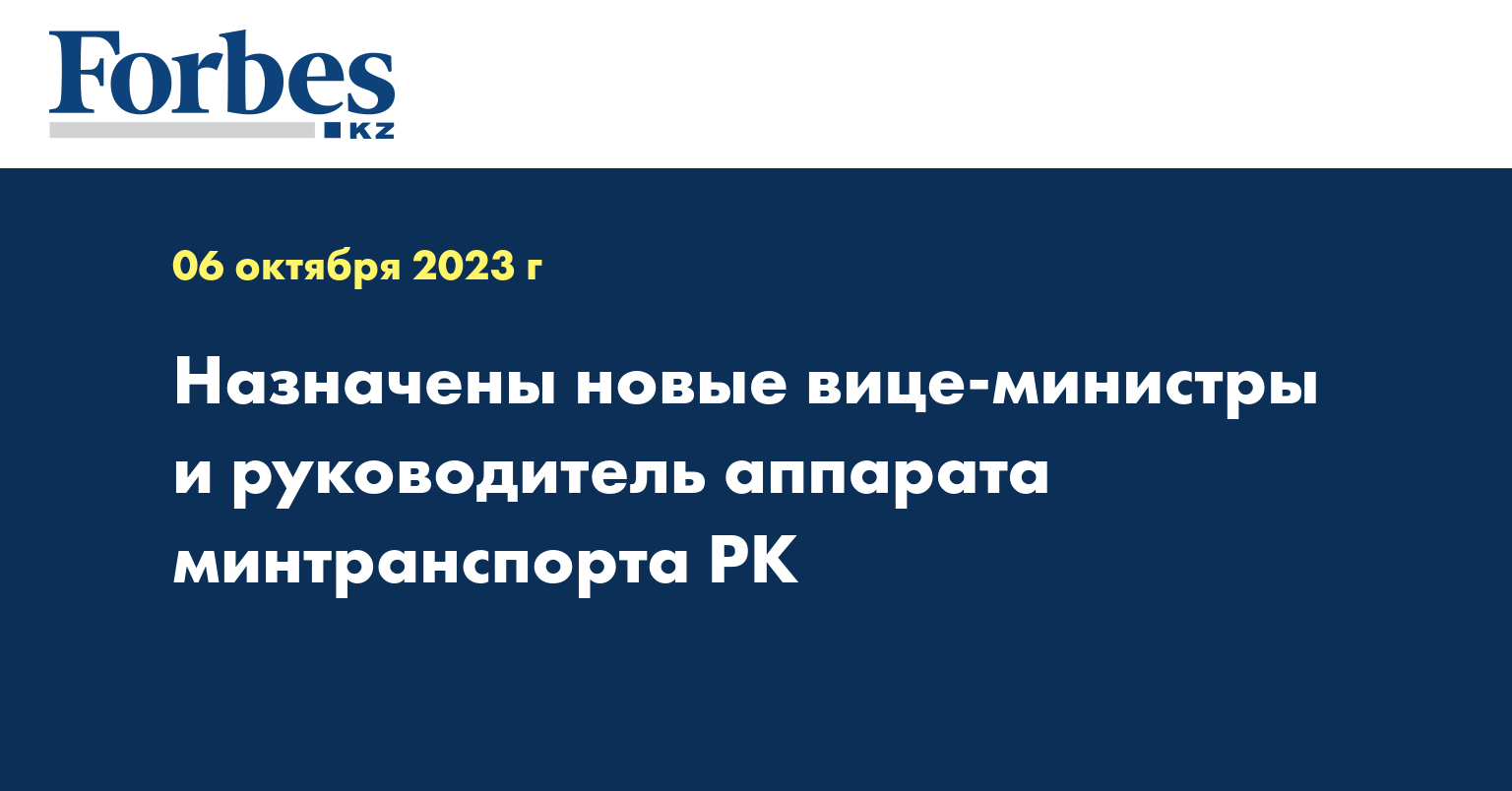 Постановлением правительства Республики Казахстан Калиакпаров Максат Кайыржанулы и Аблалиев Сатжан Айтенович назначены на должности вице-министров транспорта. Приказом министра транспорта Мукаев Ерболат Рахметович — руководителем аппарата МТ РК, передает МИА «Казинформ» со ссылкой на пресс-службу министерства транспорта РК.