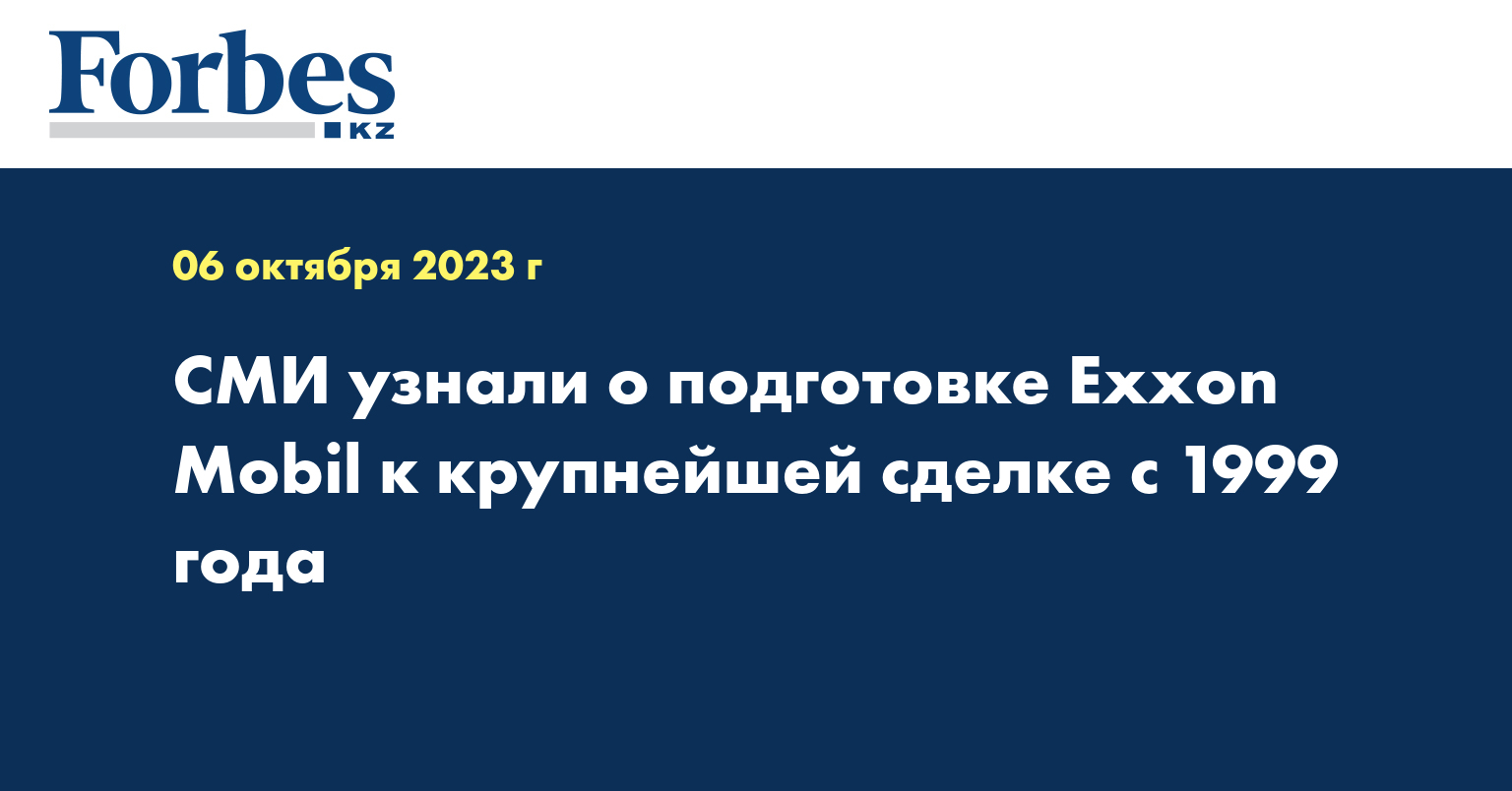 Сделка может быть заключена уже в ближайшее время, она станет крупнейшей для Exxon после ее слияния с Mobil в 1999 году. С ее помощью компания рассчитывает занять положение лидирующего производителя сланцевой нефти в США, отмечает Bloomberg. После объединения нефтегазоносных площадок в Пермском бассейне в Техасе и Нью-Мексико Exxon сможет добывать около 1,2 млн баррелей в день — больше, чем многие страны ОПЕК, пишет агентство.
