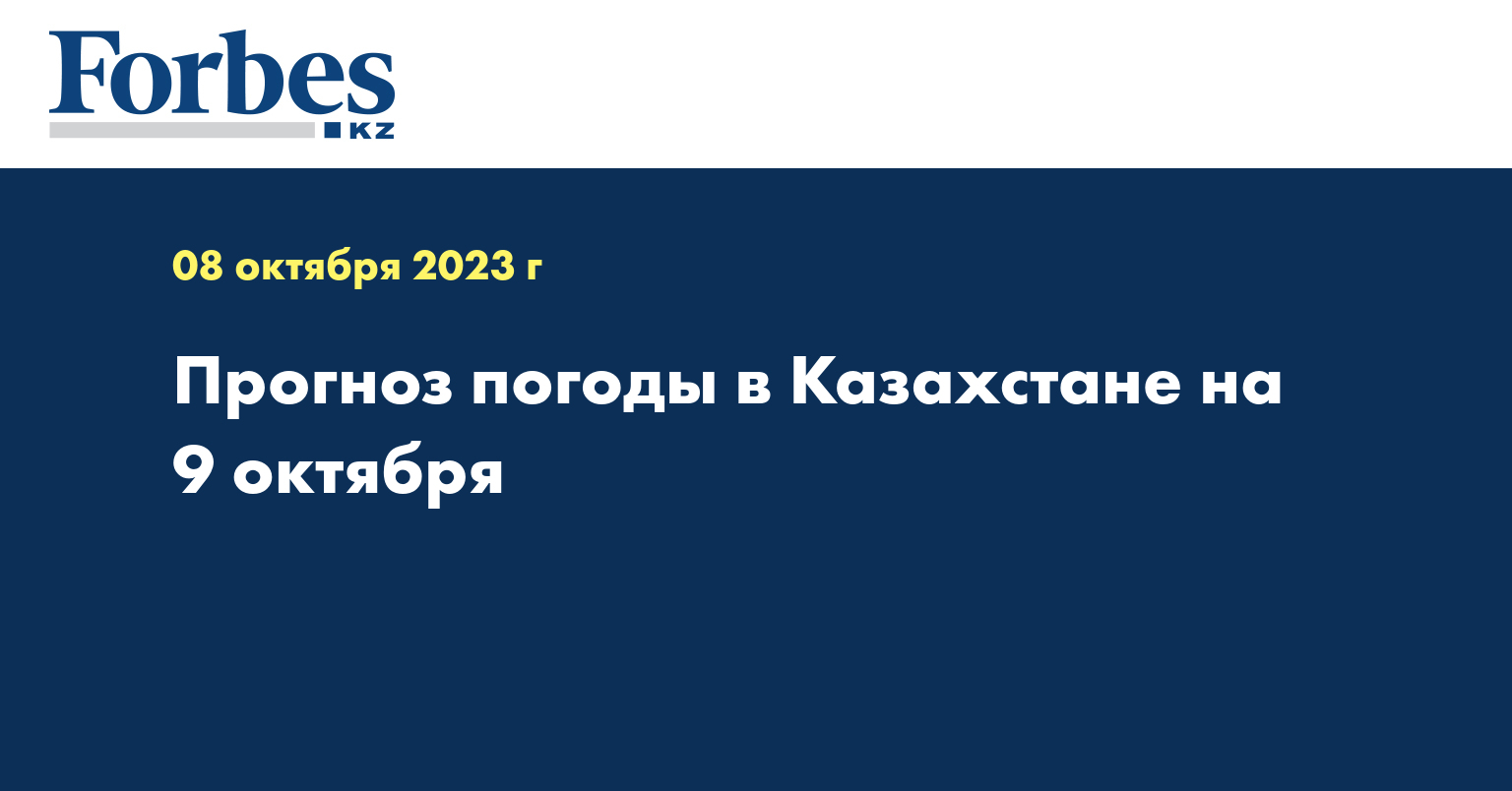 Прогноз синоптической ситуации и опасных явлений погоды по территории Казахстана на 9 октября представил «Казгидромет».