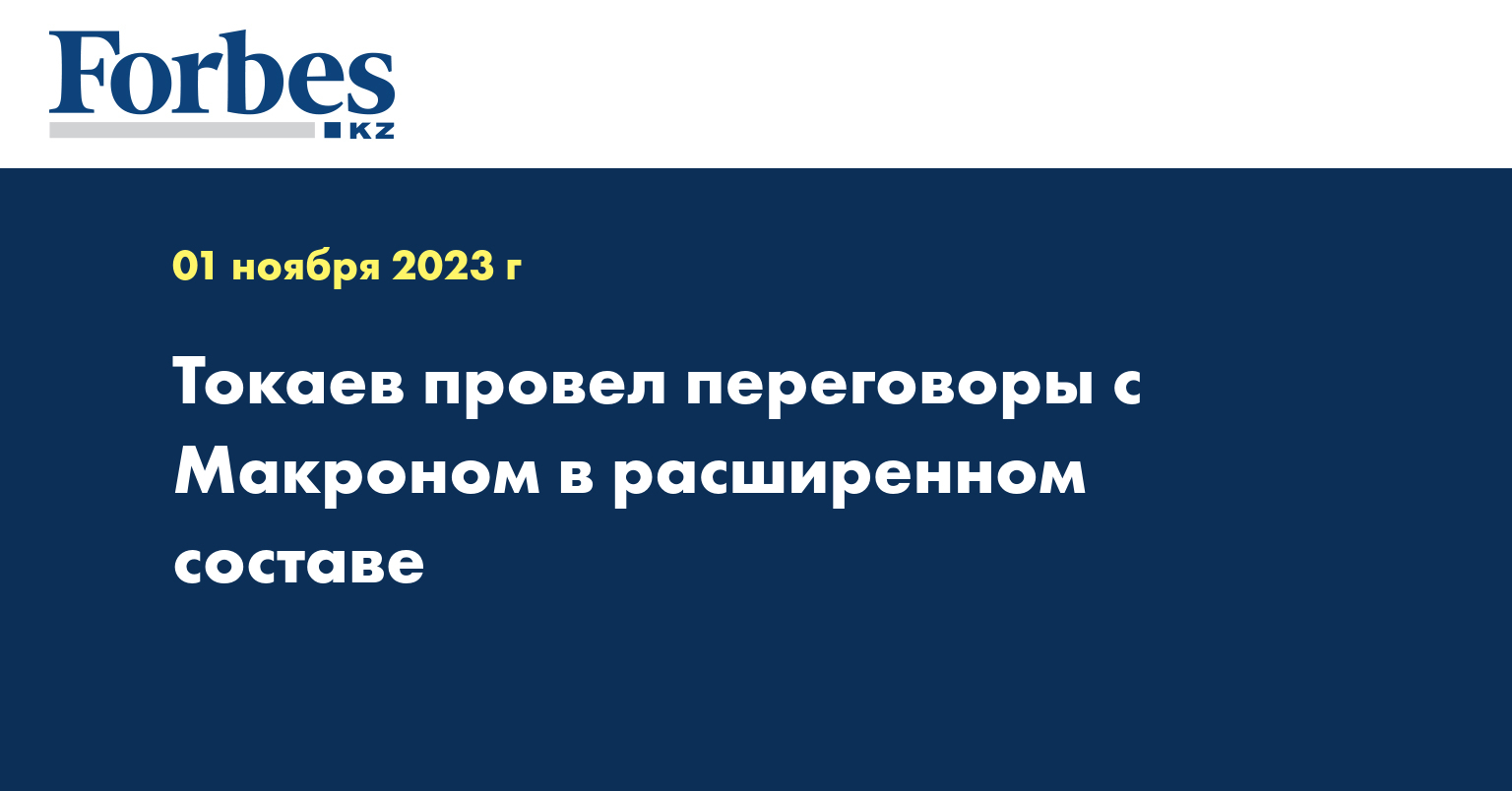 Касым-Жомарт Токаев и Эмманюэль Макрон провели переговоры в расширенном составе с участием официальных делегаций двух государств, сообщает Акорда.