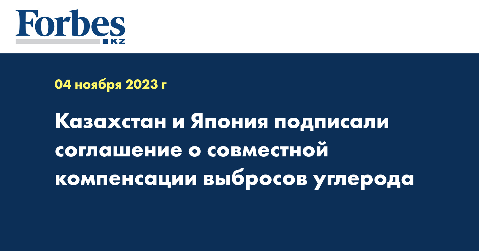 Сделка была подписана 30 октября и призывает обе страны создать совместный механизм кредитования (JCM) с целью продвижения инвестиций и использования декарбонизирующих технологий, продуктов, систем, услуг и инфраструктуры в Казахстане.