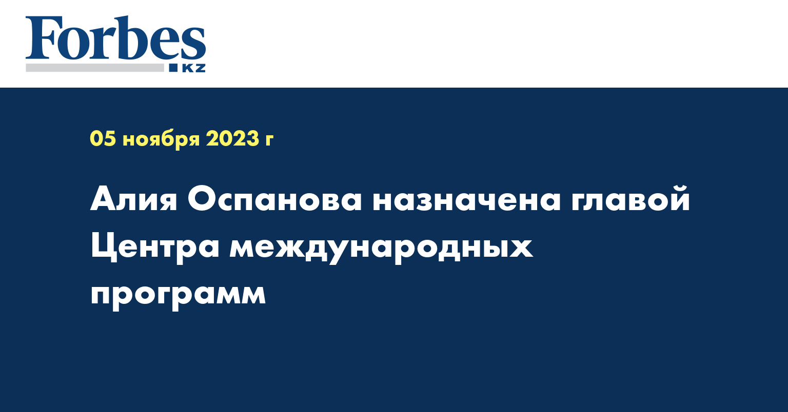 Алия Оспанова возглавила Центр международных программ, который является администратором программы Bolashaq, передает пресс-служба ЦМП.