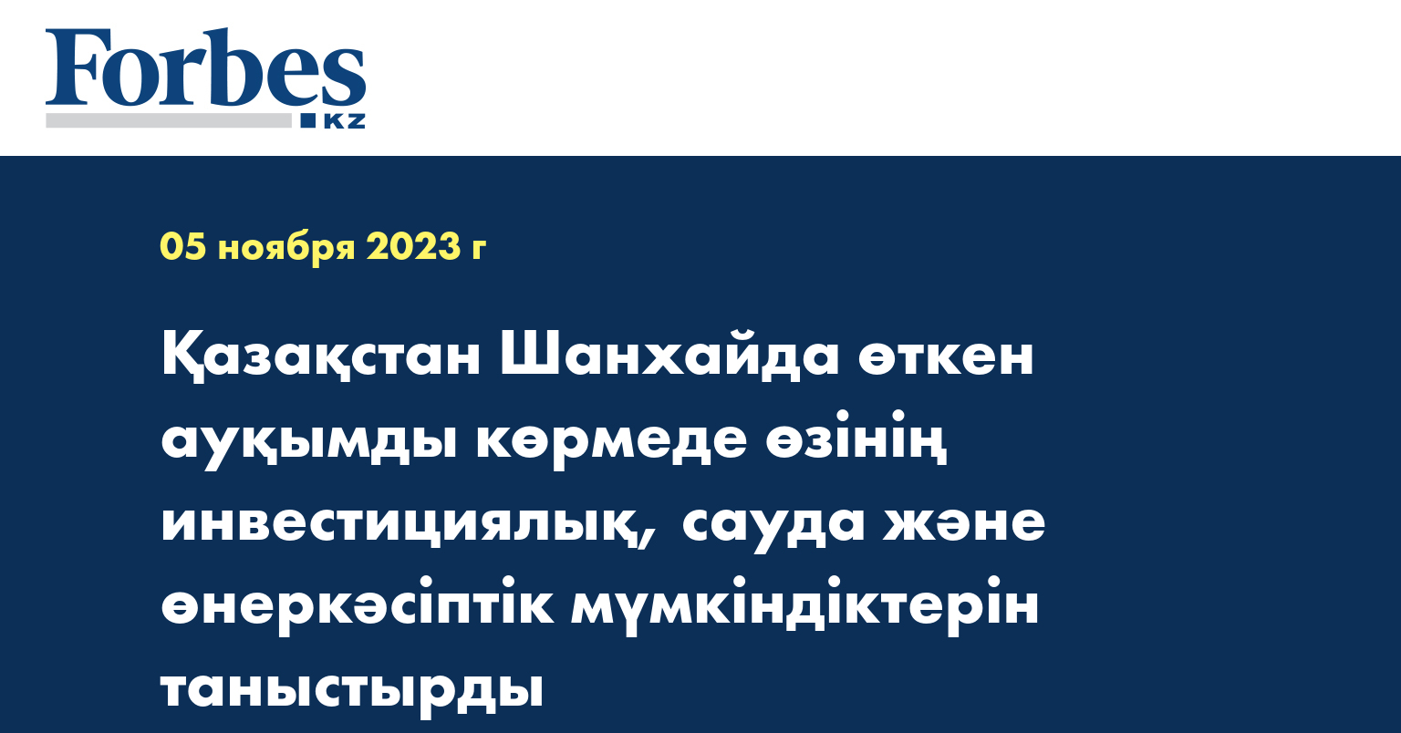 Айта кету керек, соңғы 5 жылда Қытайдың халықаралық импорт көрмесіне Қазақстаннан 133 компания қатысып, соның арқасында құны $260 млн-нан астам сомаға тиімді экспорттық келісімшарттар жасалды.