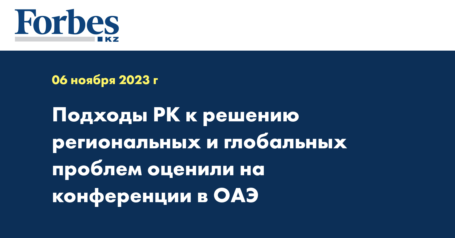 Основные подходы Казахстана к решению актуальных региональных и глобальных проблем представил на прошедшей 3-5 ноября в Абу-Даби конференции по мировой политике заместитель министра иностранных дел РК Роман Василенко, сообщает пресс-служба МИДа.