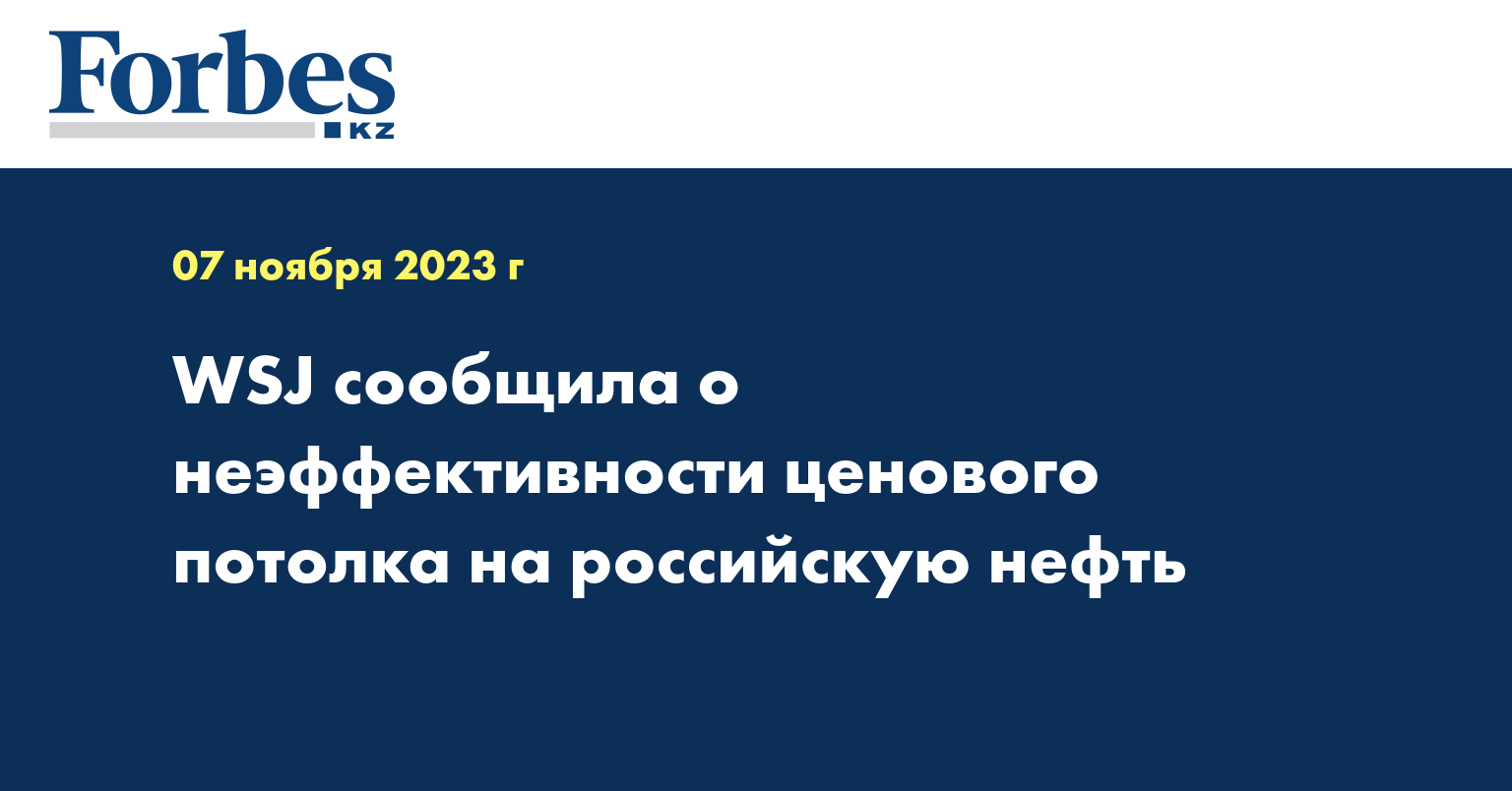 Ценовой потолок на российскую нефть, введенный странами «большой семерки», все больше теряет свою эффективность, сообщила The Wall Street Journal, передает Forbes.ru.Издание обратило внимание на официальные данные, согласно которым в октябре поступления от нефти и газа в российский бюджет выросли более чем вдвое по сравнению с сентябрем, и почти на 25% — по сравнению с тем же месяцем прошлого года.