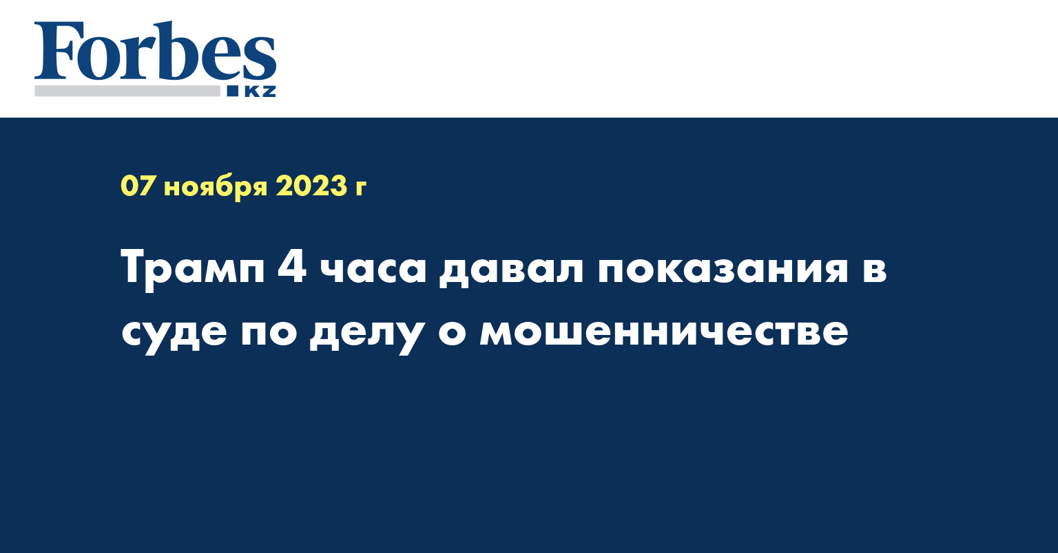 В понедельник Дональд Трамп давал показания в суде в Нью-Йорке по гражданскому делу, в рамках которого он обвиняется в завышении стоимости своих активов для получения более выгодных условий кредитования и страхования, пишет Голос Америки.