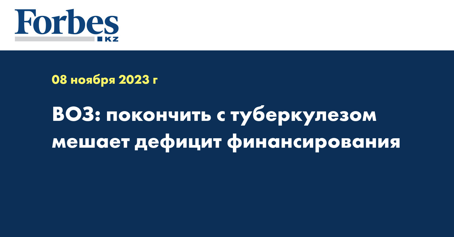 Общее число смертей от ТБ, включая смертность среди людей с ВИЧ, в 2022 году составило 1,3 млн человек, что на 100 тысяч меньше, чем годом ранее. Однако в целом в результате пандемии COVID-19 в период с 2020 по 2022 год от туберкулеза умерло почти на полмиллиона человек больше, чем в предыдущие годы.
