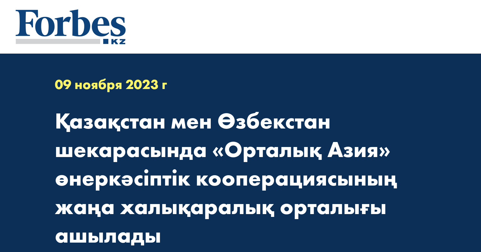 9 қарашада Ташкентте Қазақстанның Сауда және интеграция министрі Арман Шаққалиев пен Өзбекстанның инвестиция, өнеркәсіп және сауда министрі Лазиз Кудратов екі ел шекарасында құрылатын «Орталық Азия» халықаралық өнеркәсіптік кооперация орталығының қызметін реттеу туралы келісімге қол қойды.