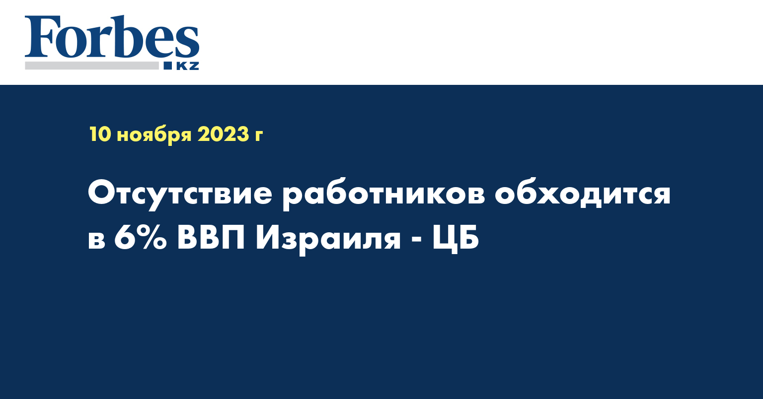 Отсутствие тысяч работников на своих рабочих местах из-за продолжающегося конфликта между Израилем и движением ХАМАС обходится израильской экономике в 2,3 млрд шекелей (около 600 млн долларов США) в неделю, или в шесть проц. недельного ВВП страны, сообщил Центральный банк (ЦБ) Израиля в четверг, передает Синьхуа.