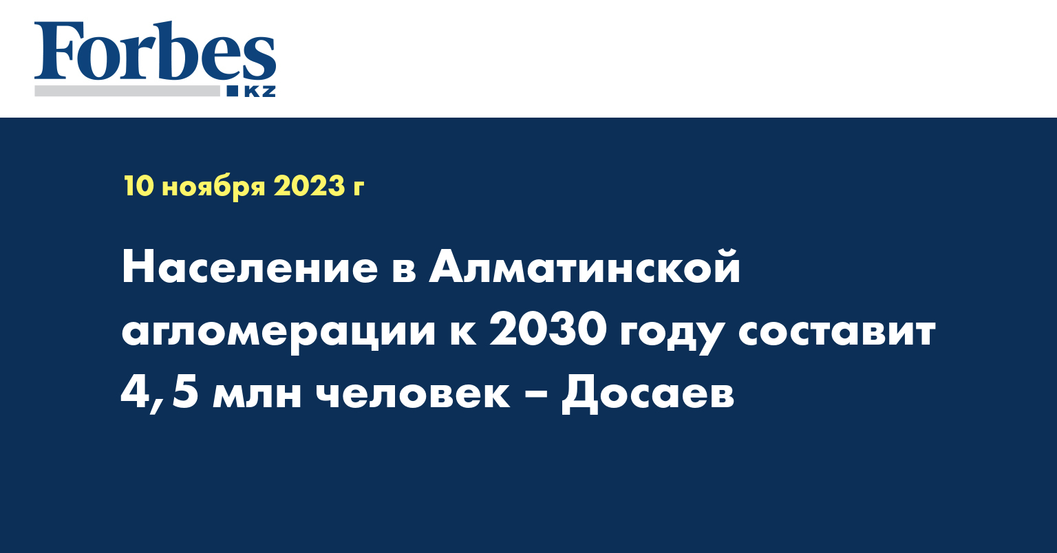 «Население в агломерации сегодня более 3,5 млн человек, по прогнозам, к 2030 году составит уже 4,5 млн человек. С учетом нового закона «О развитии агломераций» с начала нынешнего года законодательно закреплен статус Алматинской агломерации с его центром – городом Алматы. Комплексный план развития Алматинской агломерации до 2029 года уже одобрен маслихатами, как города Алматы, так и Алматинской области, и должен быть принят в Правительстве до конца текущего года», - заявил глава мегаполиса.
