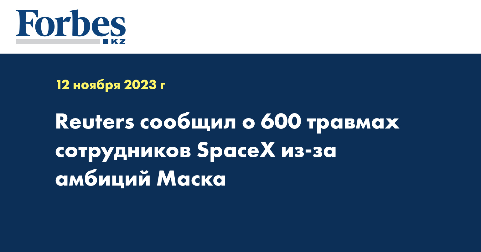 Повышенный травматизм в компании агентство связывает с низкой культурой техники безопасности и стремлением ее руководителя Илона Маска как можно быстрее осуществить полет на Марс. Сотрудники рассказали Reuters о «хаосе на рабочих местах, где недостаточно обученные и переутомленные сотрудники регулярно пропускают базовые процедуры безопасности, чтобы уложиться в установленные Маском жесткие сроки».