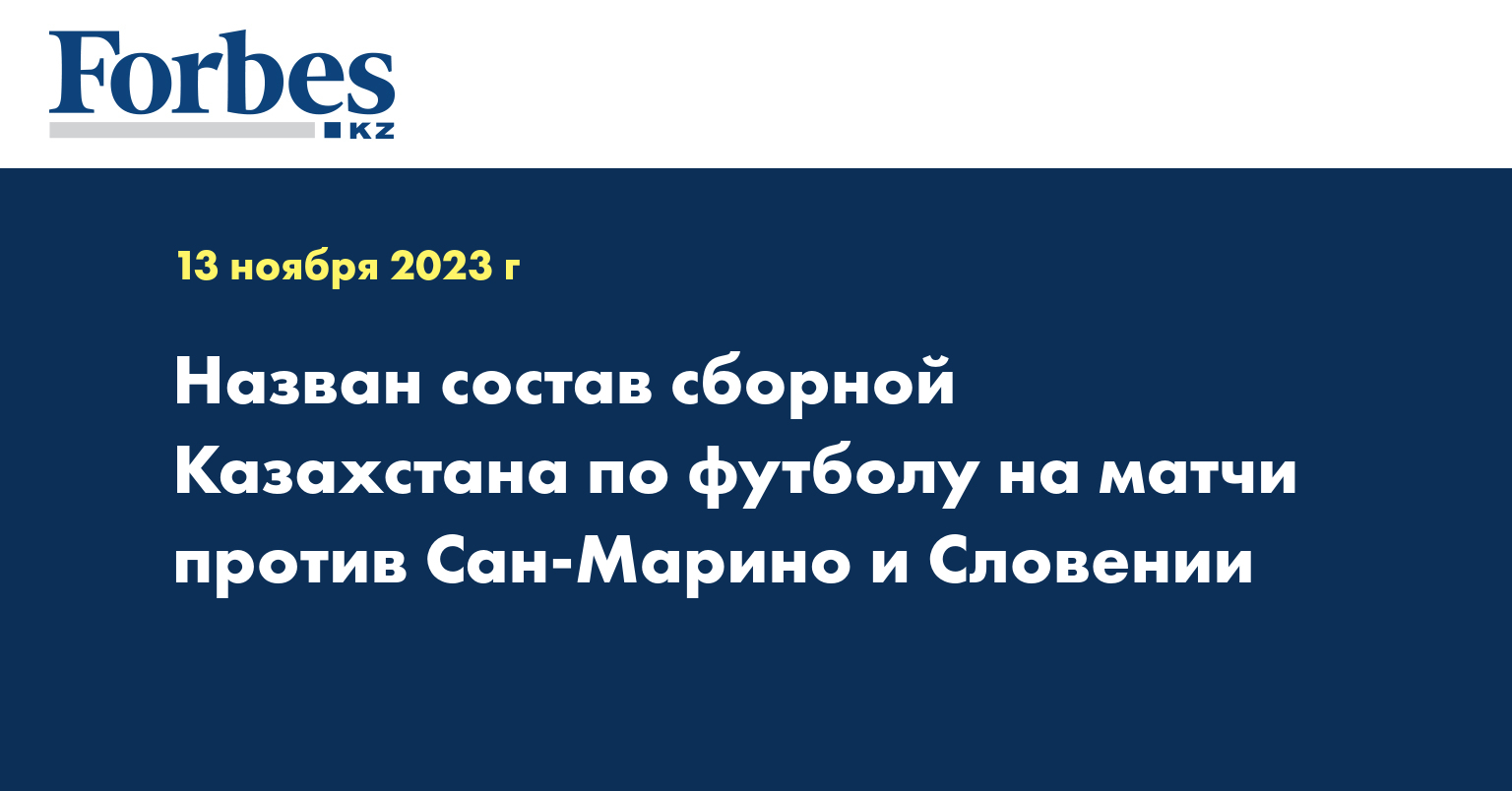Главный тренер национальной сборной Казахстана Магомед Адиев объявил окончательный список игроков, вызванных на ноябрьские матчи квалификации чемпионата Европы 2024 года против Сан-Марино (17 ноября) и Словении (20 ноября), передает пресс-службу Казахстанской федерации футбола.