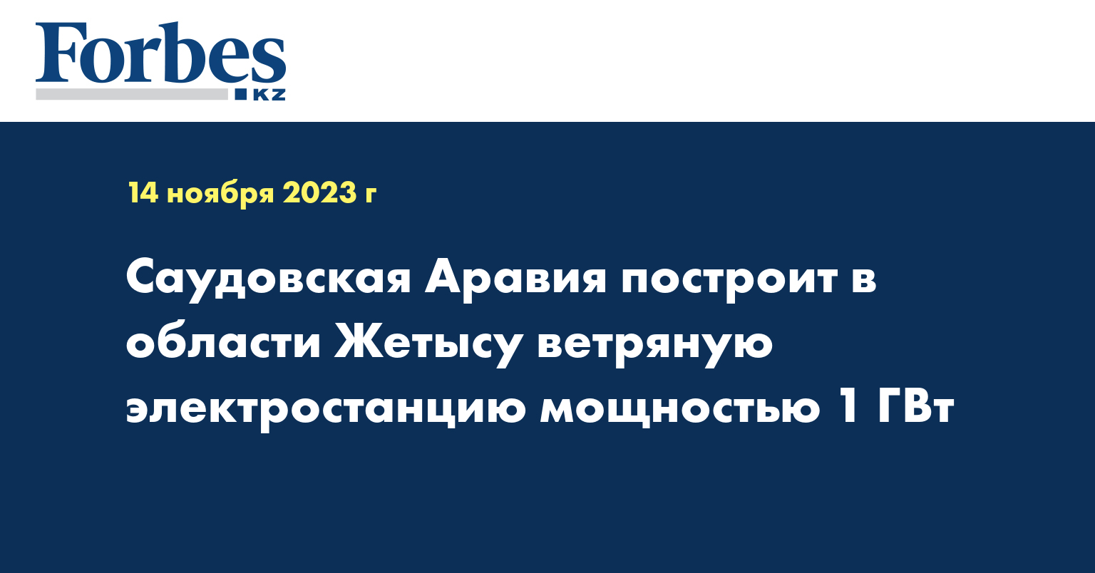 В частности, обсужден проект строительства крупной ветряной электростанции мощностью 1 ГВт в области Жетысу. В настоящее время ведется подготовительная работа. Начало строительства при достижении финального соглашения намечено на 2025 год.