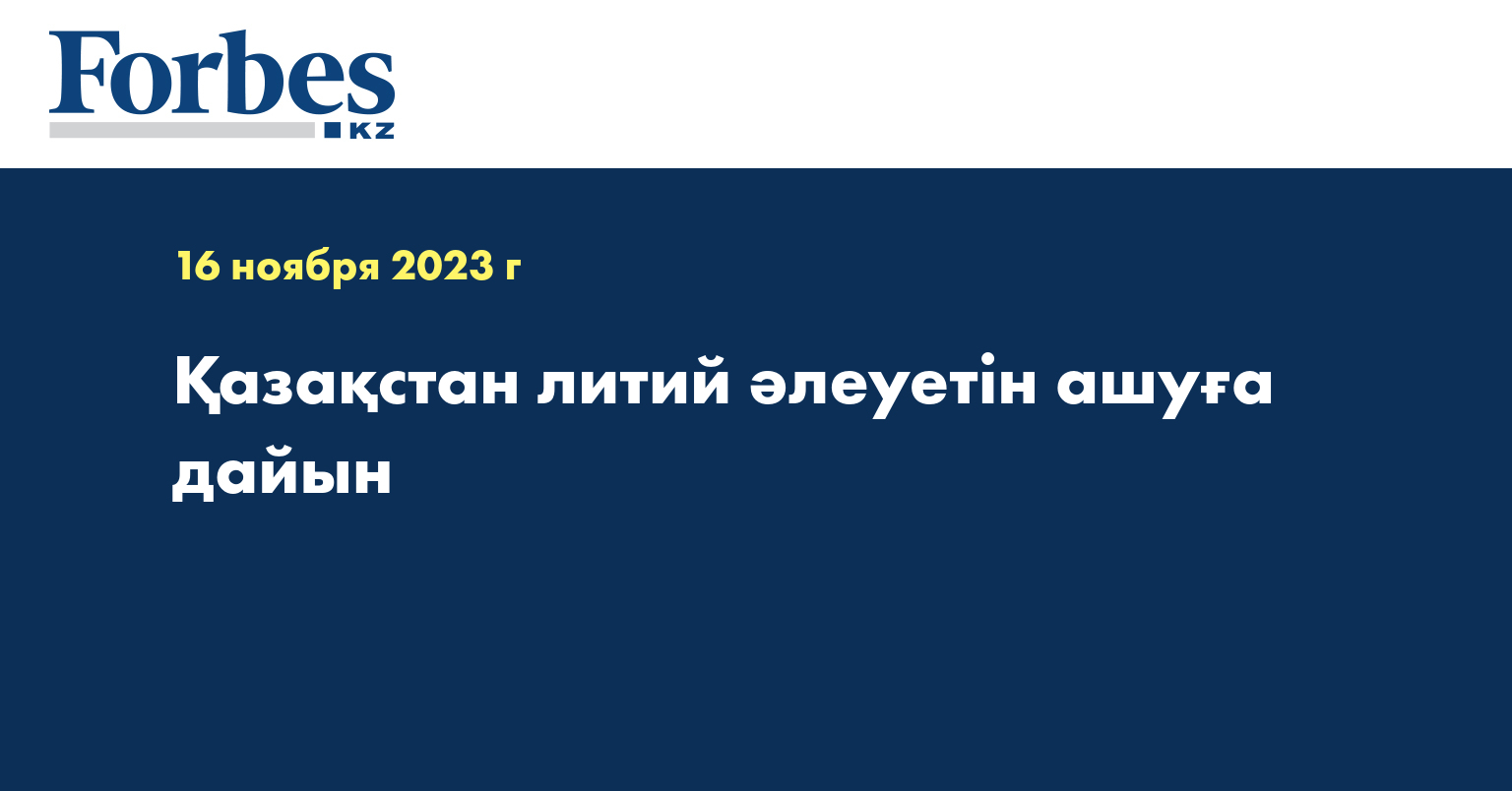 Қазақстанның үш облысында литий әлеуетін зерттеубойынша жұмыстар басталады. Бұл туралы 13-16 қараша аралығында Бельгияда өтіп жатқан ЕО-Қазақстан әріптестік форумында – «Ұлттық геологиялық қызмет» АҚ Басқарма Төрағасы Ерлан Ғалиев мәлім етті.