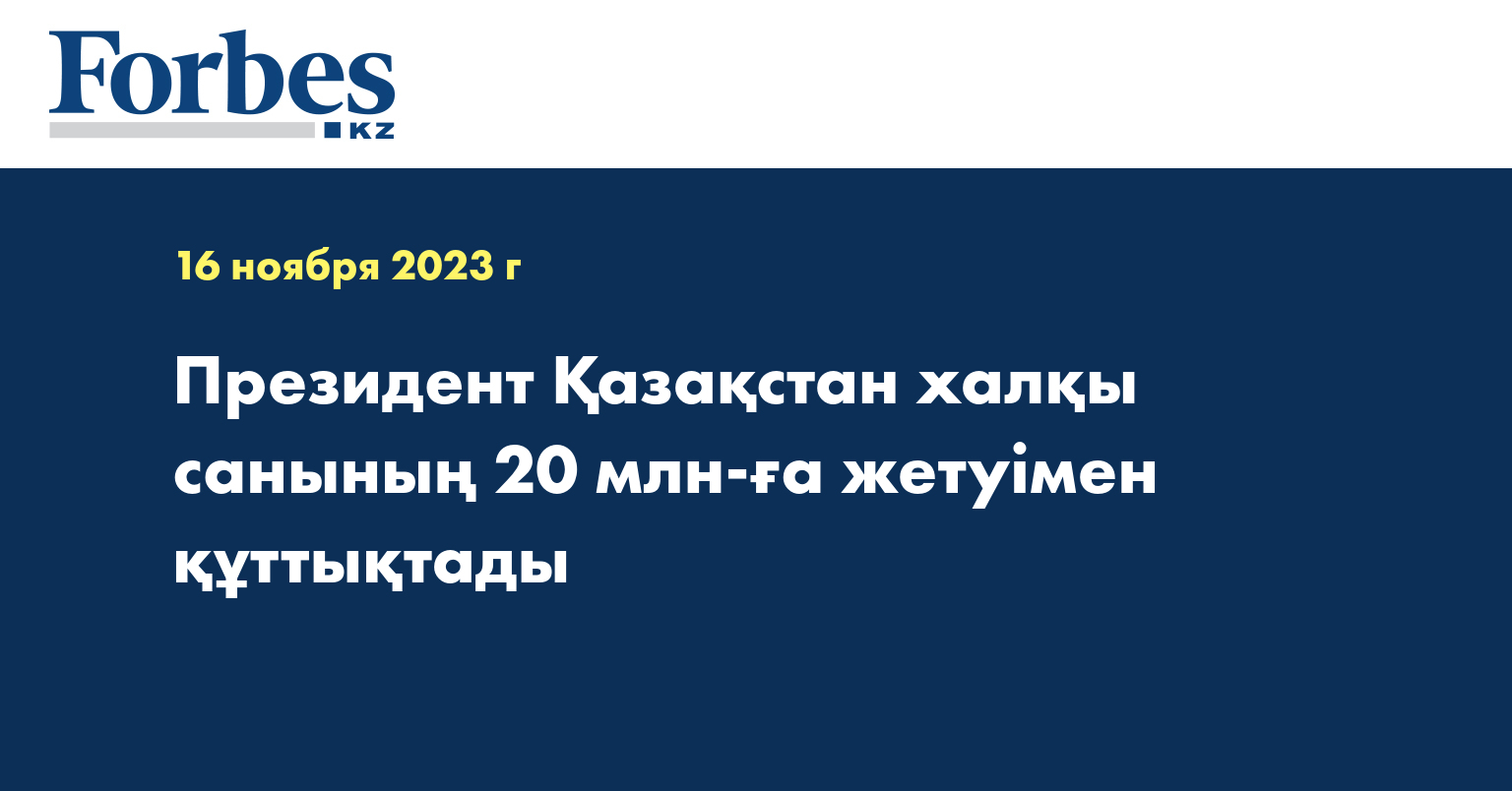 Мемлекет басшысы Қасым-Жомарт Тоқаев қазақстандықтарды халық санының 20 миллионға жетуімен құттықтады