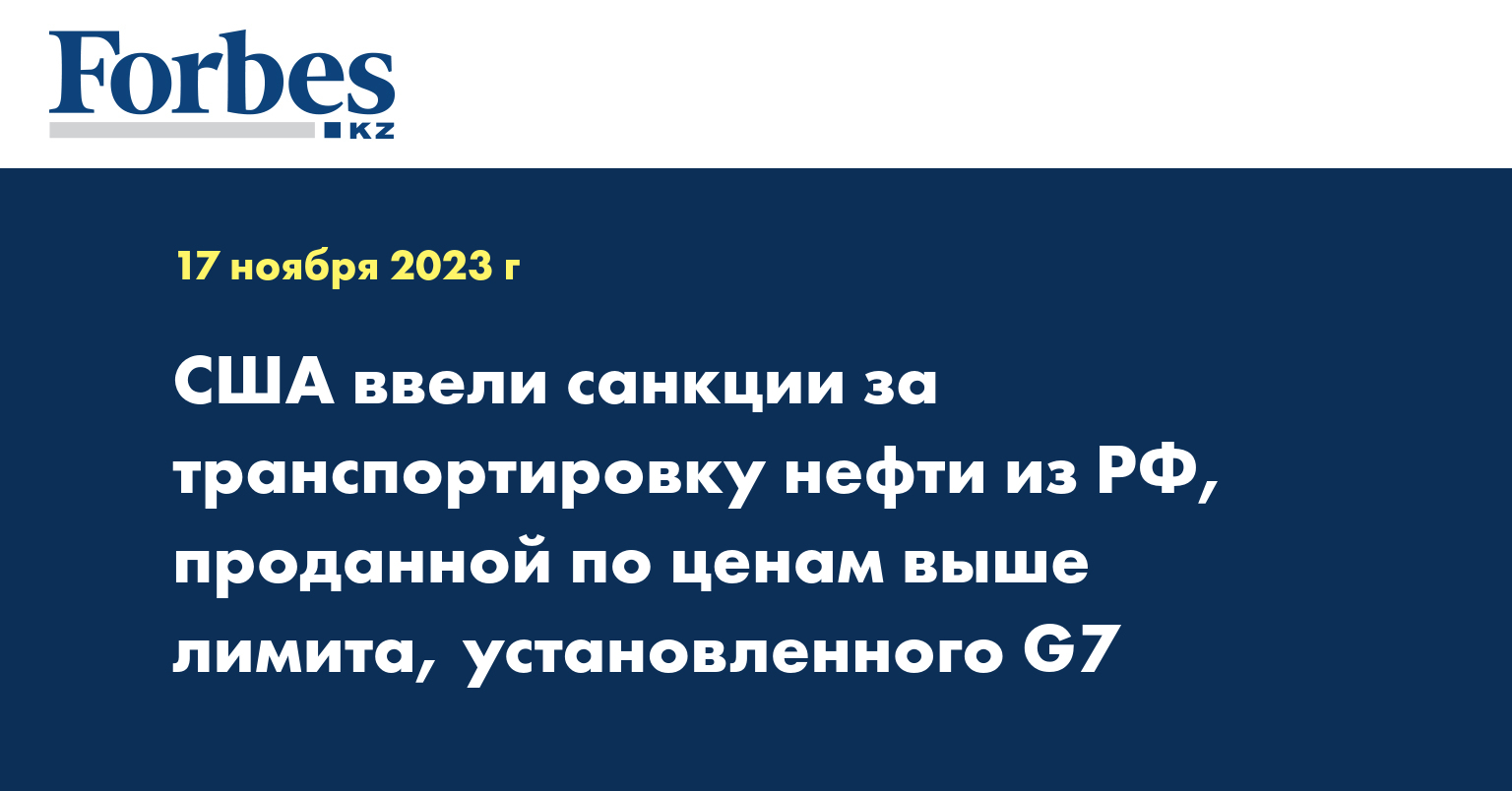 США ввели санкции против ряда компаний и судов за транспортировку российской нефти, продаваемой по ценам, превышающим лимит, установленный «Большой семеркой».