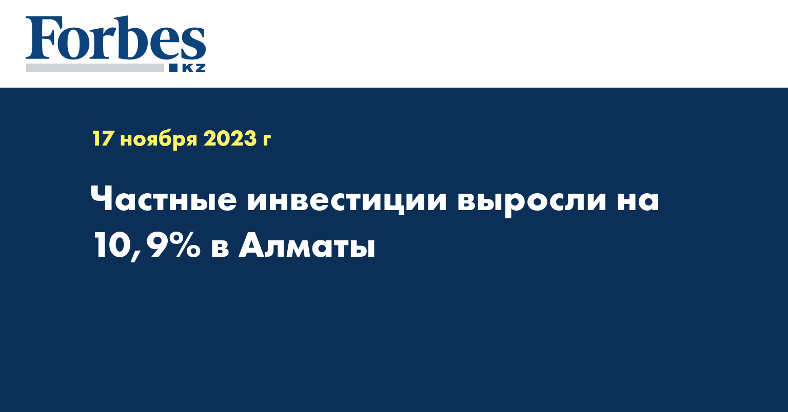 За 10 месяцев текущего года инвестиции в основной капитал по г.Алматы увеличились до 4,2% и составили 1,2 трлн тенге, при этом частные инвестиции выросли на 10,9% до 1,07 трлн тенге. Об этом сообщили в Управлении экономики города Алматы.