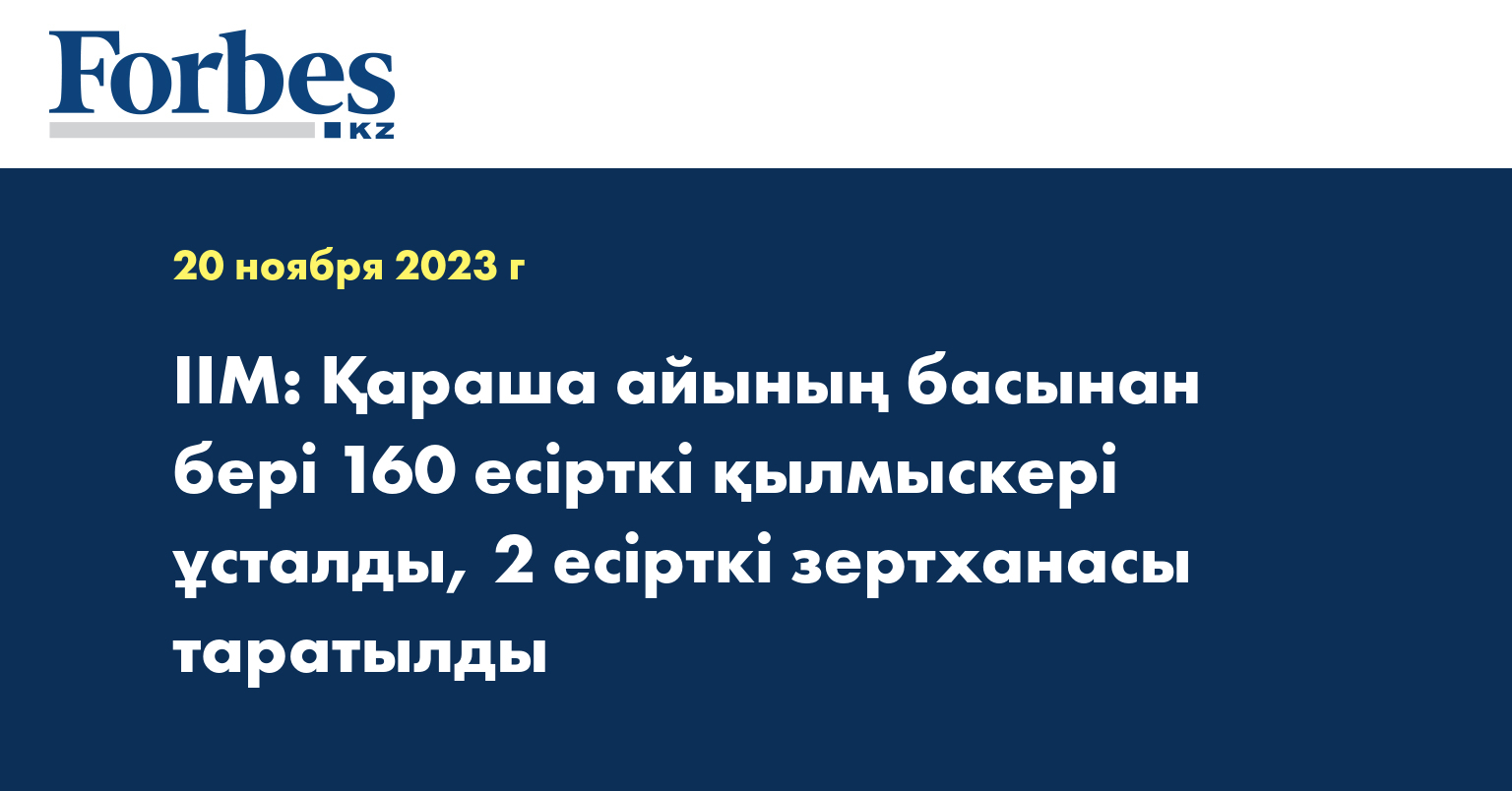 16 қарашада Алматы облысы Ұзынағаш кентінде полиция қызметкерлері есірткі зертханасын ұйымдастырғаны үшін Алматы қаласының екі тұрғынын ұстады. Үйдің аумағында орналасқан контейнерді тінту барысында үш тоннадан астам прекурсор, электрондық таразылар, реактор, шыны колбалар және 30 кг дайын мефедрон психотроптық заты тәркіленді. – Қараша айынан бастап ІІМ есірткі қылмысына қарсы күрес бөлімшелерінің қызметкерлері заңсыз айналымнан 208 кг түрлі есірткі заттарын тәркіледі, – деді ІІМ есірткі қылмысына қарсы іс-қимыл департаменті бастығының орынбасары Сарқытбай Құсайынов.