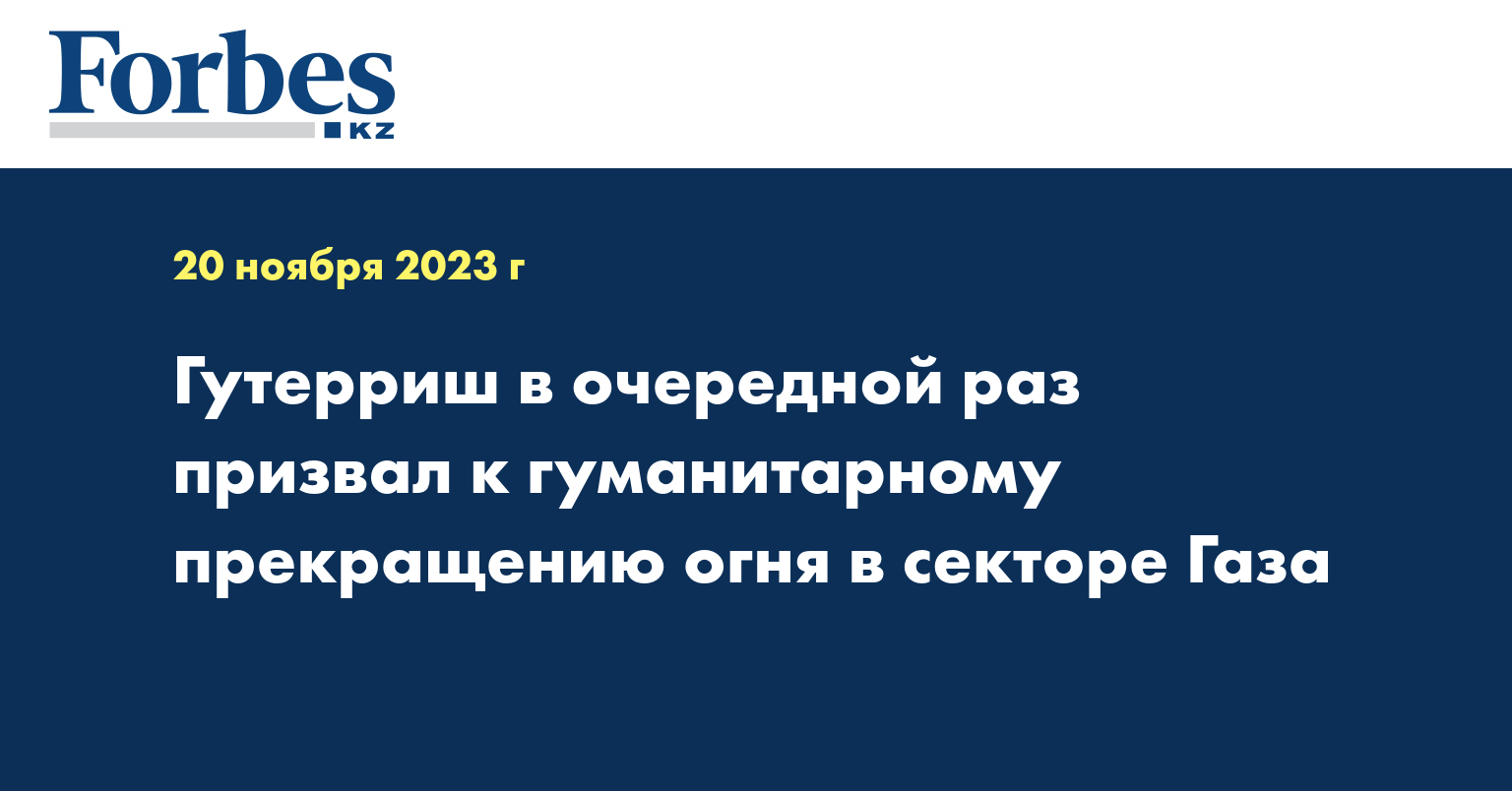 Генеральный секретарь ООН Антониу Гутерриш в воскресенье в очередной раз призвал к гуманитарному прекращению огня в связи с ростом числа погибших в секторе Газа, передает "Синьхуа".