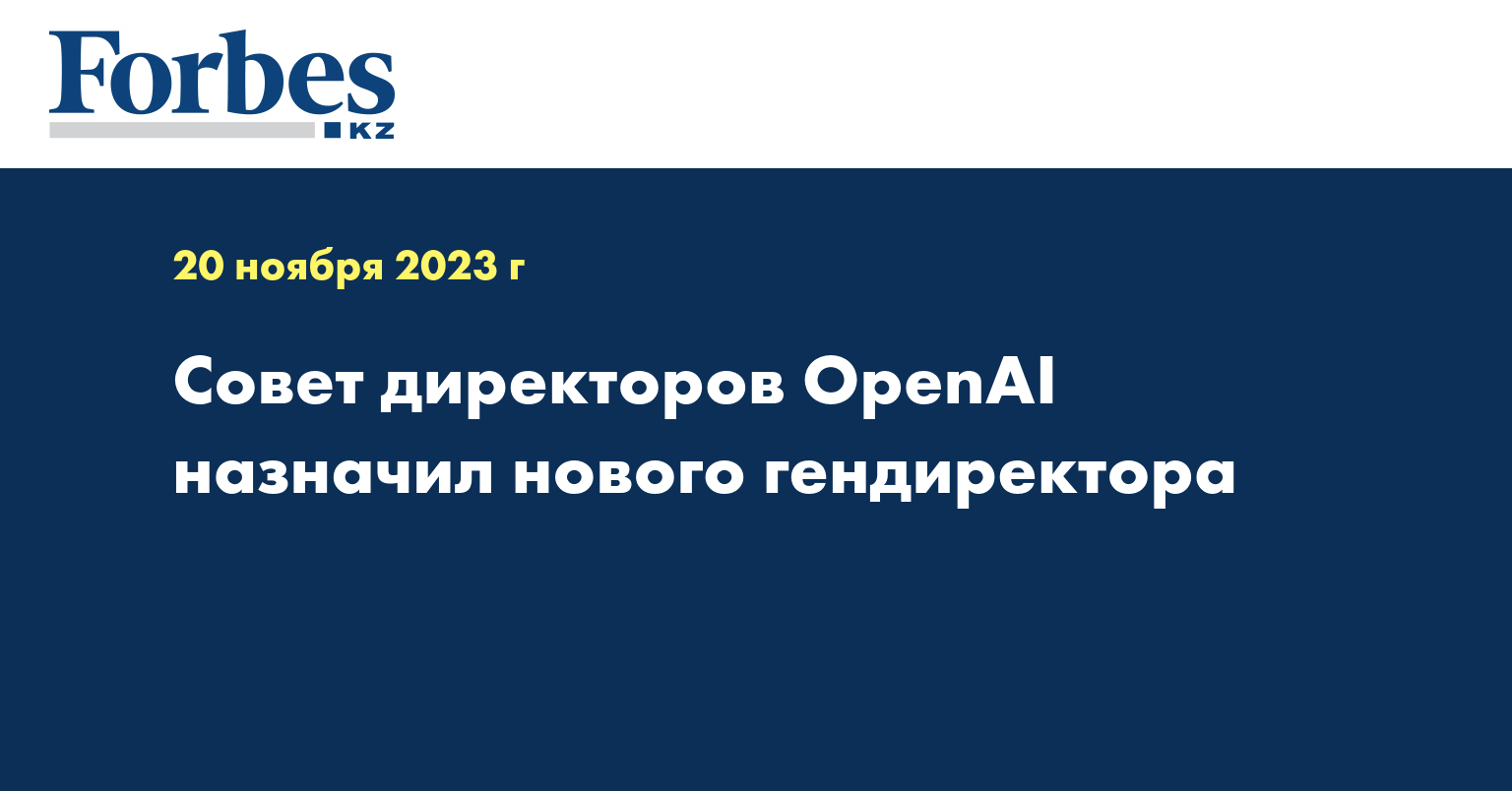 Совет директоров OpenAI назначил временным генеральным директором компании бывшего главу и одного из основателей Twitch Эммета Шира. Об этом со ссылкой на источники сообщают The Information, Bloomberg, Financial Times и The Verge, передает Forbes.ru.