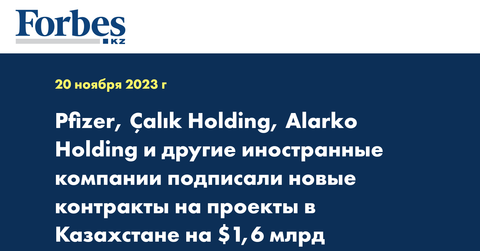 Так, компания Pfizer наладит в Казахстане производство инновационной пневмококковой вакцины Prevenar 20. Компания Çalık Holding построит в Костанайской области завод по переработке бобовых культур. Бизнес-конгломерат Alarko Holding заключил соглашение с акиматом Шымкента о строительстве теплиц. Lasselsberger group построит комплекс по производству строительного клея и сухих смесей. Roche планирует локализацию оригинальных биотехнологических лекарственных препаратов. Işıklar Packaging построит завод по производству крафтовой бумажной упаковки. Alstom откроет в РК вагоноремонтное депо и головной сервисный центр по обслуживанию электровозов.