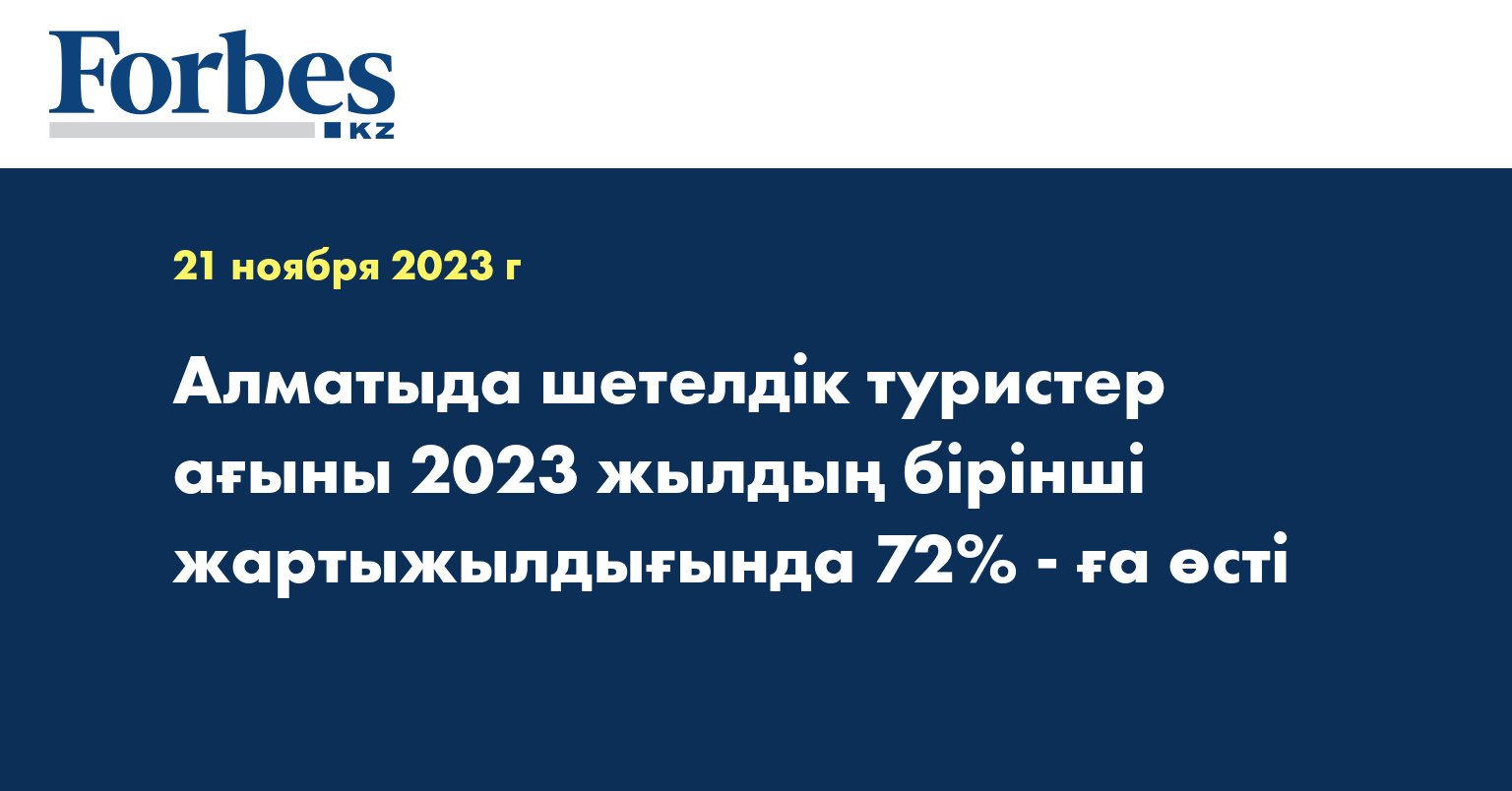 Алматыда 2023 жылдың 1 жартыжылдығының қорытындысы бойынша туристердің жалпы саны 972 157 адамды құрады. Бұл туралы Алматы қаласы туризм басқармасы «Орталық Азия елдерінде туризмді дамыту» тақырыбындағы баспасөз конференциясы аясында хабарлады. Басқарманың мәліметі бойынша, шетелдік туристер саны 261 571 адамды құрады, бұл өткен жылмен салыстырғанда 72,6% - ға, ал ішкі туристер саны-710 586, 14% - ға өсті.