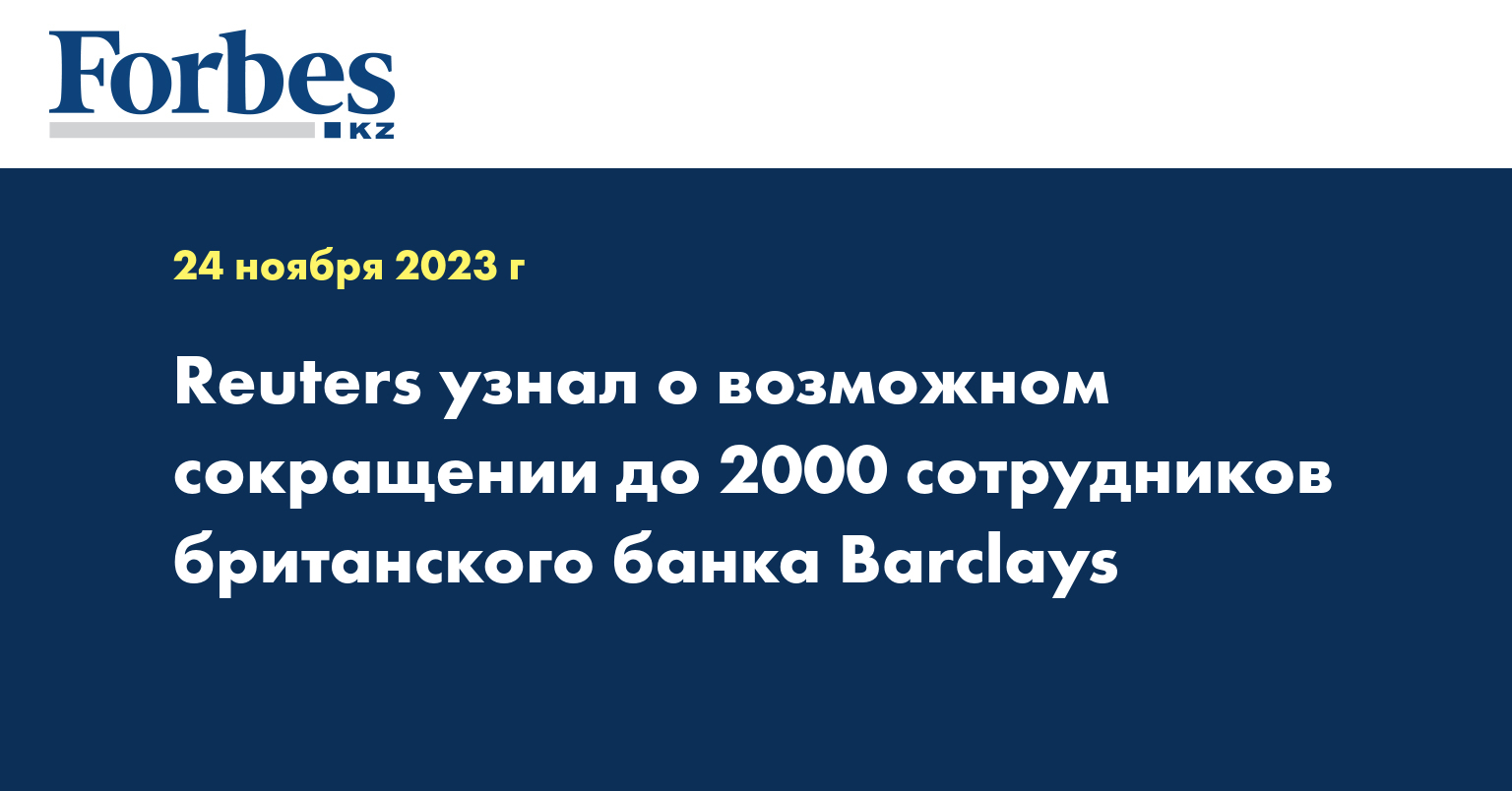 Британский банк Barclays работает над планом экономии расходов на $1,25 млрд. В рамках этого плана банк рассматривает возможность сокращения до 2000 рабочих мест, в основном, в Barclays Execution Services, передает Reuters со ссылкой на собеседника, знакомого с предложениями. Цель Barclays по экономии составит около 7% от базовых годовых операционных расходов банка в размере 15 млрд фунтов стерлингов в 2022 году, передает Forbes.ru.