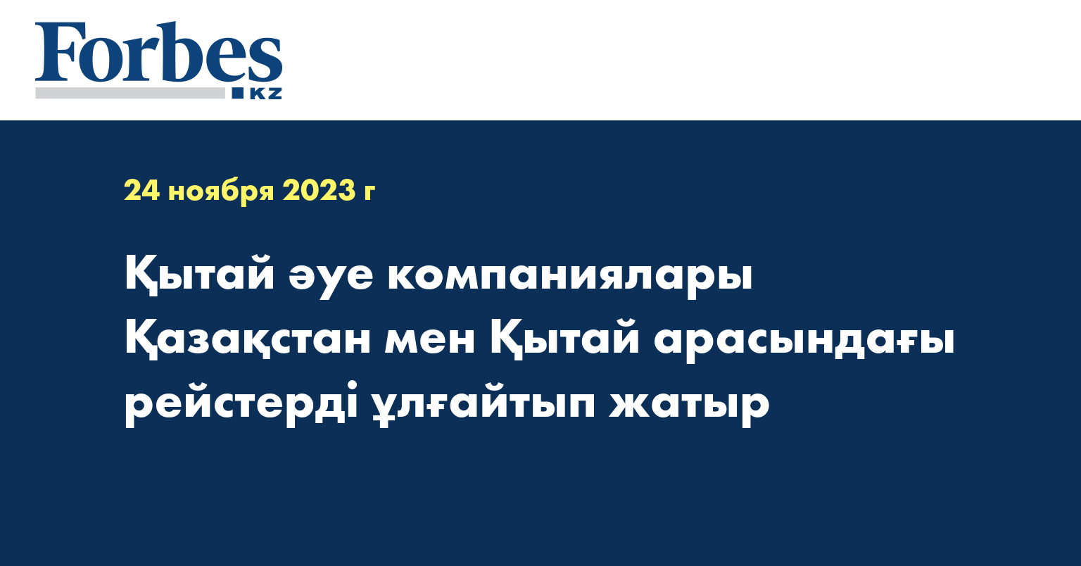 Сонымен қатар сұраныс артқан кезде China Southern Airlines әуекомпаниясы Алматы қаласынан Үрімші және Сиань қалаларына, сондай-ақ Астана қаласынан Үрімші қаласына 2024 жылдың көктемгі-жазғы маусымынан бастап қолданыстағы бағыттар бойынша рейстер санын ұлғайту мүмкіндігін қарастыруға дайын. Өз кезегінде Loong Airlines әуекомпаниясы биыл желтоқсан айында Алматы – Ханчжоу бағыты бойынша орындалатын рейстер санын аптасына 3 рейстен 4 рейске дейін арттыруды жоспарлап отыр.