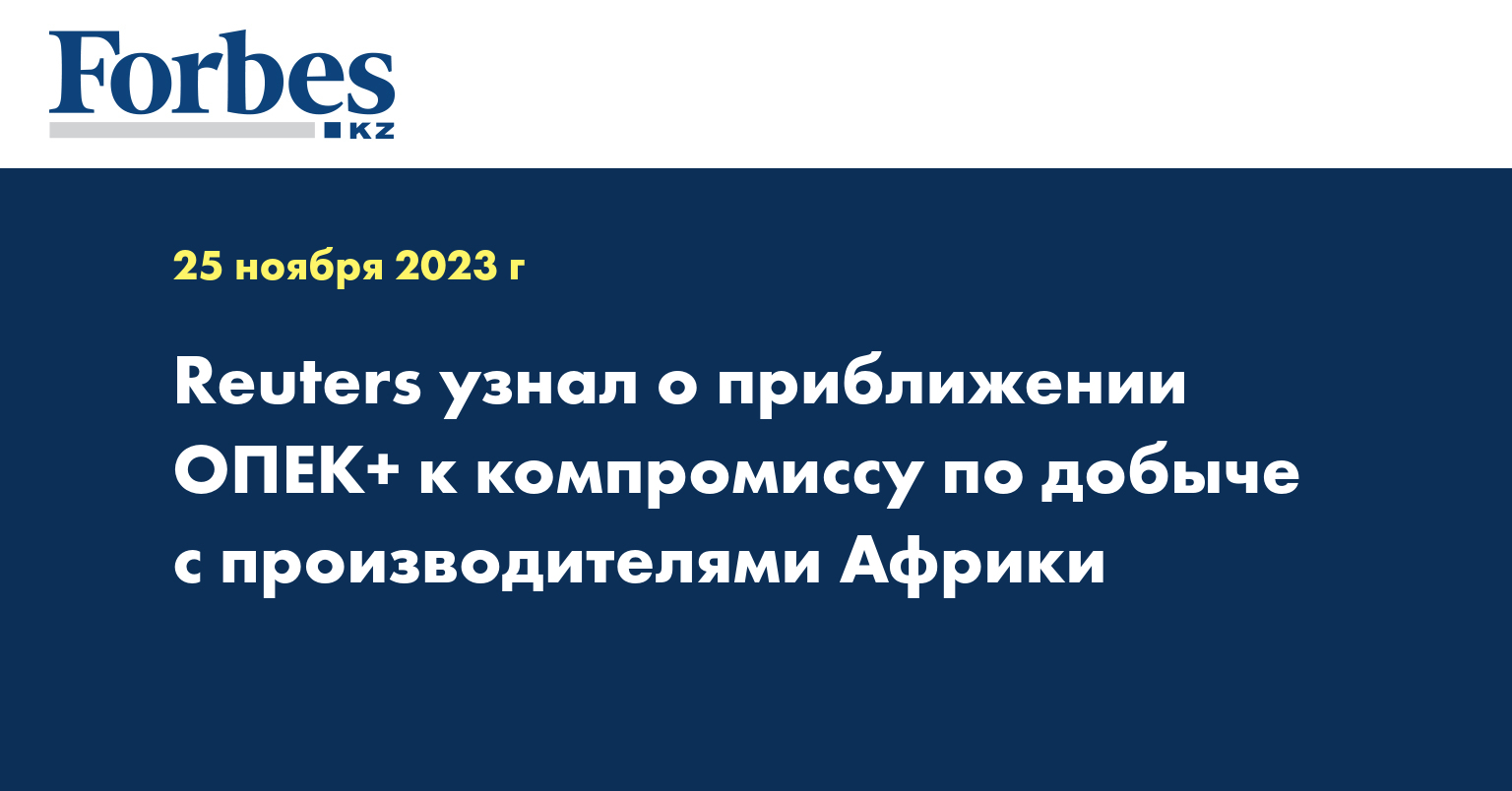 ОПЕК+ приблизилась к соглашению с африканскими производителями нефти по уровням добычи на 2024 год, сообщили Reuters три источника в ОПЕК+, после того как разногласия по этому вопросу вынудили группу нефтедобывающих стран отложить ключевую встречу альянса. Один из источников заявил, что он «с 99% уверенностью» считает, что организация сможет достичь компромисса в новую дату встречи — 30 ноября. Два других источника сказали, что соглашение будет достигнуто уже скоро. Четвертый источник сообщил, что переговоры продолжаются, пишет Forbes.ru.