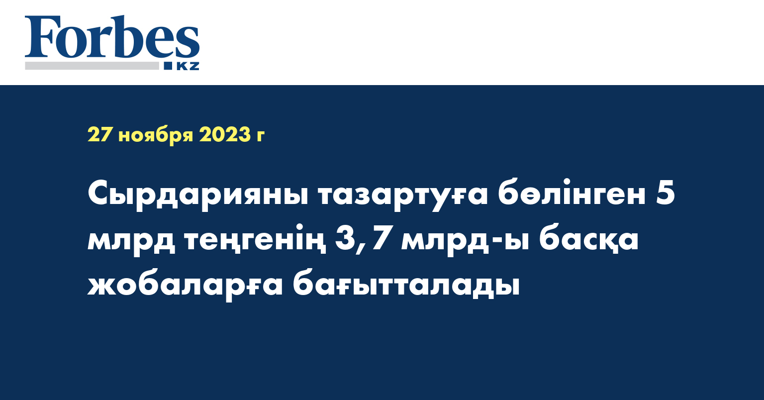 Мәселен, Қызылордада Сырдария өзенінің арнасын тазартуға 5 млрд теңге қарастырылған болатын. Алайда, жобаның сапасыз жоспарлануына байланысты тазарту жұмыстарынан кейін қатты ағыс пен желдің әсерінен өзен арнасы қайта ластанып, толып қала беретіні ескерілмеген. ҚМА өңірлік департаментінің қызметкерлері қабылдаған шаралардан кейін әкімдік 3,7 млрд теңге көлемінде игерілмеген қаражатты басқа әлеуметтік мақсаттарға бағыттады.