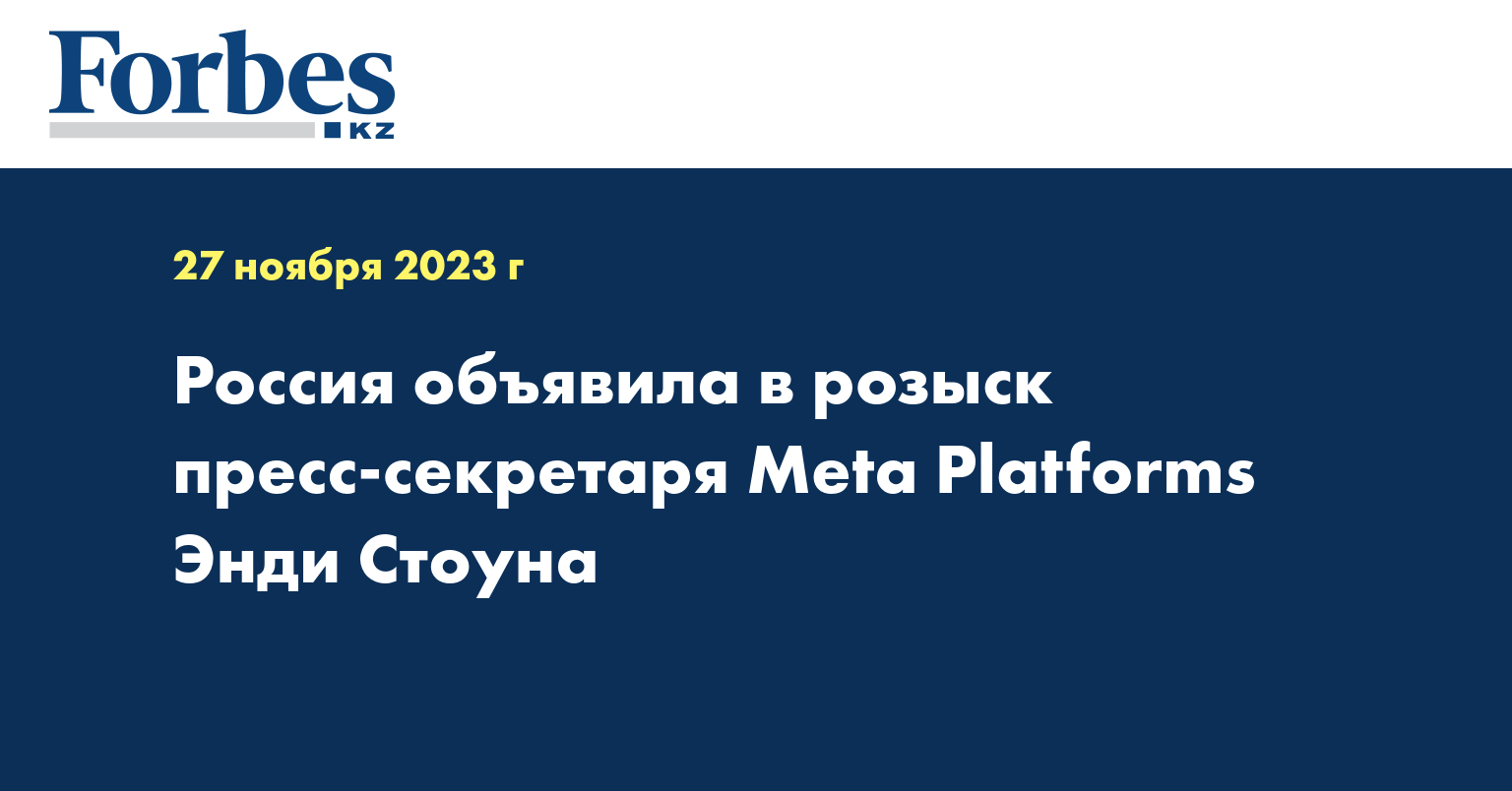 В воскресенье Россия объявила пресс-секретаря Meta Platforms Энди Стоуна в розыск по неуточненным обвинениям, поскольку американская компания, которой принадлежит Facebook, классифицируется Москвой как «экстремистская», передает "Голос Америки".