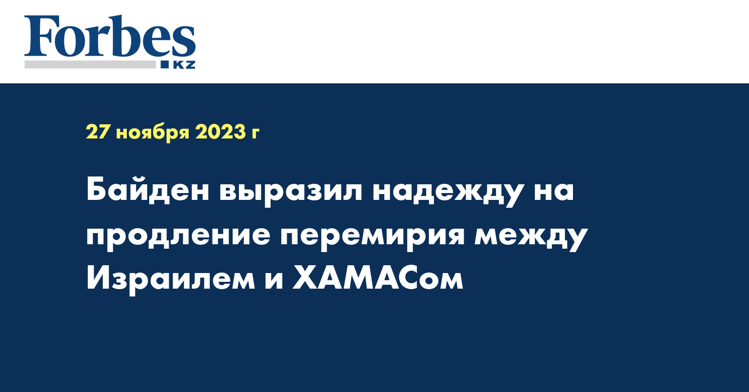 Президент Джо Байден выразил надежду на то, что временное перемирие между Израилем и ХАМАСом (признана террористической организацией) продолжится в течение долгого времени, поскольку радикальная группировка освободила ещё 17 человек, включая 4-летнюю американку. ХАМАС заявил о желании продлить паузу в боевых действиях, которая войдет в свой четвёртый и последний договорённый день в понедельник. Ранее Израиль предложил согласиться на дополнительный день перемирия за каждые дополнительно освобожденные 10 заложников и в три раза увеличить количество освобождаемых палестинских заключённых за каждый раз, передает "Голос Америки".
